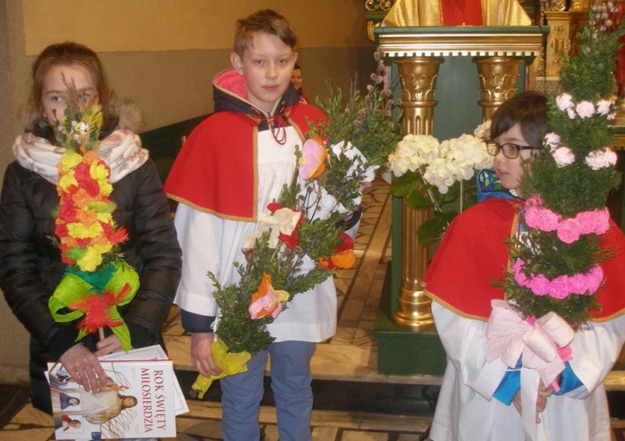 Ogłoszenie wyników konkursu palmowego w sączowskim kościele, rozdanie nagród.