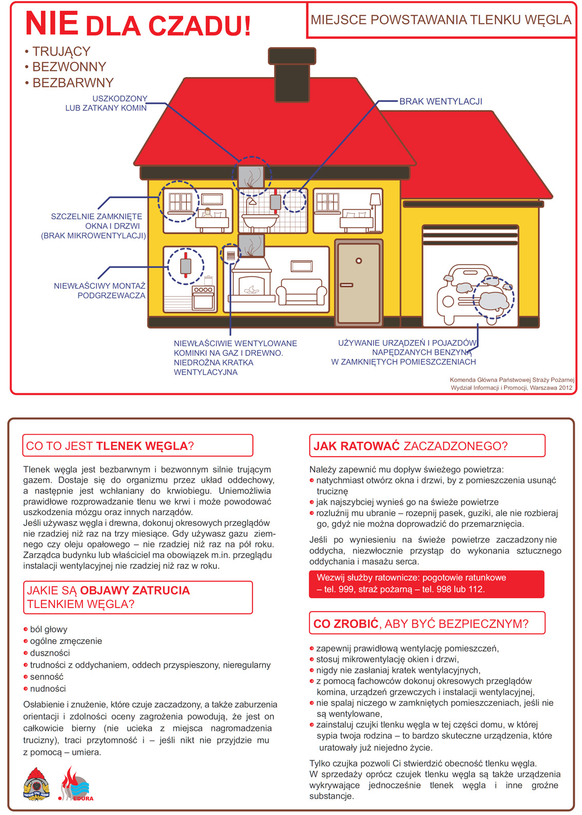 Tlenek węgla potocznie zwany czadem jest gazem silnie trującym, bezbarwnym i bezwonnym, nieco lżejszym od powietrza, co powoduje, że łatwo się z nim miesza i w nim rozprzestrzenia. Powstaje w wyniku niepełnego spalania wielu paliw m.in.: drewna, oleju, gazu, benzyny, nafty, propanu, węgla, ropy, spowodowanego brakiem odpowiedniej ilości tlenu, niezbędnej do zupełnego spalania. Może to wynikać z braku dopływu świeżego (zewnętrznego) powietrza do urządzenia, w którym następuje spalanie albo z powodu zanieczyszczenia, zużycia lub złej regulacji palnika gazowego, a także przedwczesnego zamknięcia paleniska pieca lub kuchni. Czytaj dalej>>