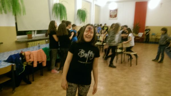 W piątek 31 listopada w naszej szkole odbyło się Halloween. Z tej okazji zorganizowaliśmy dyskotekę. Wszyscy przyszli przebrani w upiory, dlatego zrobiliśmy konkurs na najlepszy strój. Wygrała go Wiktoria Mateja, która przyszła na dyskotekę z własnoręcznie zrobioną raną postrzałową. Tego dnia przedstawiciele samorządów klasowych z panią Ania Wierżbicką przyznali klasie III tytuł „najbardziej upiornej klasy”. Wszyscy uczniowie są zadowoleni z tegorocznych obchodów tego święta.