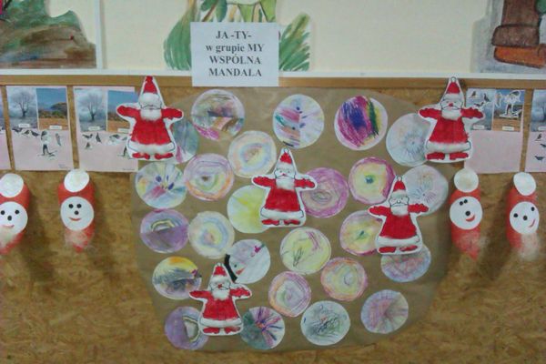 W dniach od 1 – 5 grudnia grupa „Starszaki – OI” oraz „Średniaki – OII” wzięły udział w projekcie arteterapeutyczny „Ja, Ty, w grupie My” prowadzonym przez wychowawczynie – Elżbietę Koczy i Jadwigę Skubis. Celem projektu była stymulacja aktywności społecznej dziecka w grupie rówieśniczej. Projekt trwał 4 dni, każdy z nich dotyczył innej tematyki. Dzień pierwszy „Sztuka milczenia” - wyciszanie grupy, działania z wykorzystaniem wody, oliwy i piasku. Dzień drugi „Moje emocje” - prezentacja emocji, rozróżnianie emocji pozytywnych i negatywnych, poszukiwanie rozwiązań do emocji negatywnych. Dzień trzeci „Co Cię denerwuje? Co Cię uspokaja?” - próba wyrażenia emocji środkami plastycznymi, zmiana punkty widzenia, zapoznanie się z techniką kolażu. Dzień ostatni, czwarty „Ja, Ty – My. Wspólna mandala” - identyfikacja siebie w grupie, unifikacja – scalanie różnych elementów w jedną całość, zintegrowanie grupy.
