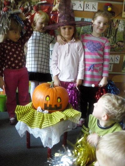 W piątek 31 października grupa „średniaków” z naszego przedszkola zorganizowała zabawę Halloweenową. Zabawa rozpoczęła się pogadanką na temat tradycji kultywowanych w innych stronach świata, następnie dzieci udekorowały ogromną dynię, wykorzystując akcesoria przyniesione przez Julkę Kubicę. Zajęcia zakończyły tańcem z duszkami.