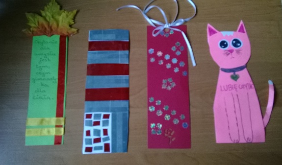 Uczniowie klas IV - VI z wielkim zaangażowaniem wykonywali swoje prace konkursowe pod kierunkiem nauczyciela plastyki. Zakładki były bardzo pomysłowe, estetycznie wykonane, dopracowane w każdym calu. Członkowie jury jak zwykle mieli trudny wybór laureatów, dlatego też przydzielone zostały po dwie nagrody na każde miejsce finałowe, pięć wyróżnień, a pozostali uczesnicy otrzymali nagrody pocieszenia. Wszystkie zakładki zostały przeznaczone na prezenty dla pierwszoklasistów i wręczone w bibliotece szkolnej podczas uroczystości "Pasowania na czytelnika".
