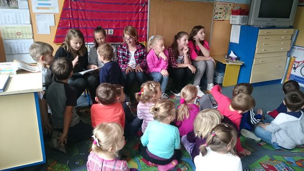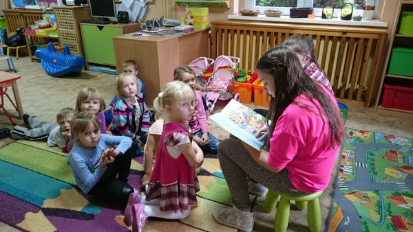 Czytanie literatury dziecięcej naszym pociechą jest niezwykle ważne. Głośne czytanie rozwija nie tylko wyobraźnię dzieci, ale także wzbogaca ich słownictwo. Baśnie, bajki oraz opowiadania w naszym przedszkolu czytają nie tylko panie wychowawczynie. Bardzo chętnie po lekcjach zaglądają do nas, z dobrą lekturą także dziewczynki ze starszych klas. Przedszkolaki serdecznie dziękują za poświęcony im czas.