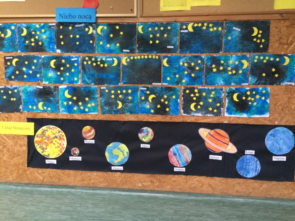 Poszerzając zainteresowania i wiedzę dzieci wychowawca grupy „Starszaki” mgr Barbara Zarodkiewicz – Czapla zorganizowała tygodniowy cykl zajęć o tematyce kosmicznej. W trakcie zajęć dzieci dowiedziały się co to jest Układ Słoneczny i gwiazdozbiory, dlaczego planety krążą dookoła Słońca, czy planety mają księżyce. Dzieci poznawały planety, gwiazdy i galaktyki. Na zakończenie tygodniowych zajęć przedszkolaki wykonały piękne prace plastyczne.