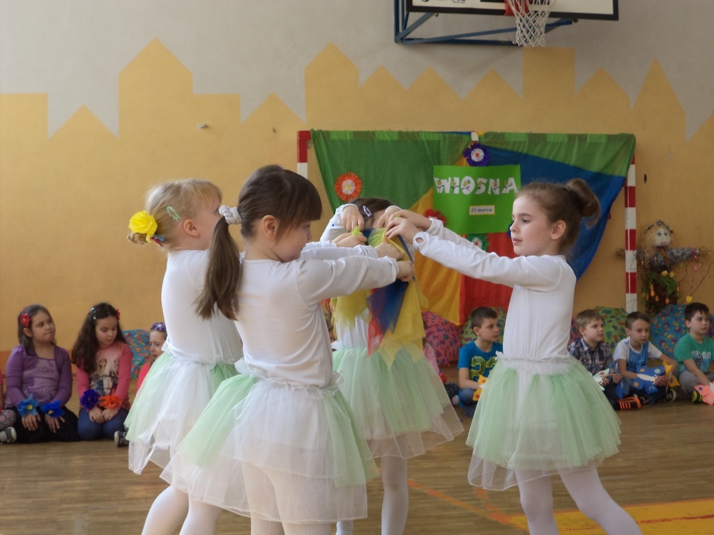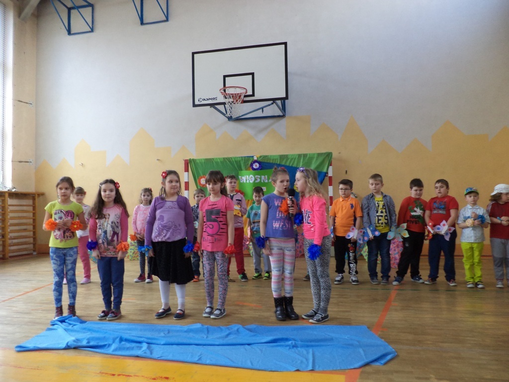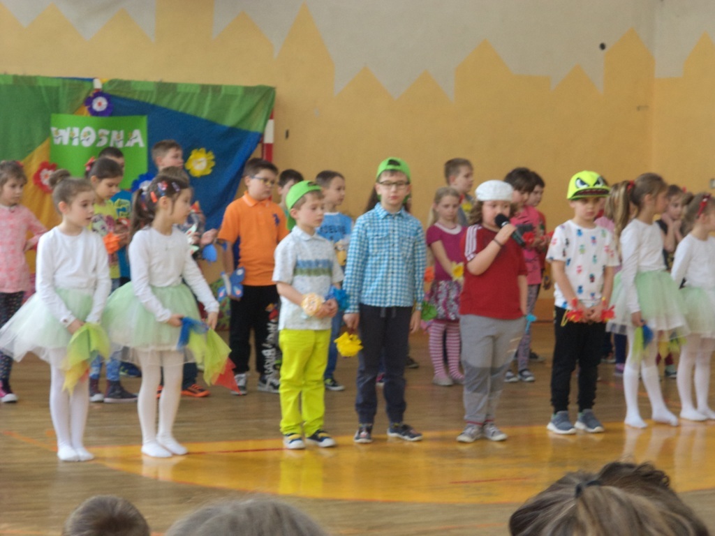 31 marca w świątecznym jeszcze nastroju, zaproszeni goście mięli możliwość zobaczyć przedstawienie pt „ Witaj wiosno”. Odbyło się ono w wiosennej scenerii i w radosnej, rodzinnej atmosferze. Aktorzy przedstawili zwyczajowy obrzęd topienia Marzanny oraz tropili ślady wiosny recytując wiersze literatury dziecięcej. Spotkanie z rodzicami stało się również okazją do tego aby dzielić się radosnym nastrojem z innymi. Po przedstawieniu opiekunka Szkolnego Klubu Wolontariatu Pani I. Gielnik zapoznała rodziców z założeniami Akcji UNICEF „ Mali uczniowie idą do szkoły” i zaprosiła do licytacji książeczek wykonanych przez członków klubu wolontariatu. Wielu chętnych rodziców zakupiło książeczki ku zadowoleniu swoich dzieci jak i tych, do których docelowo trafi pomoc organizowana ze zdobytych funduszy - Małych z Mali.