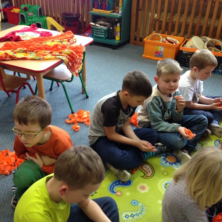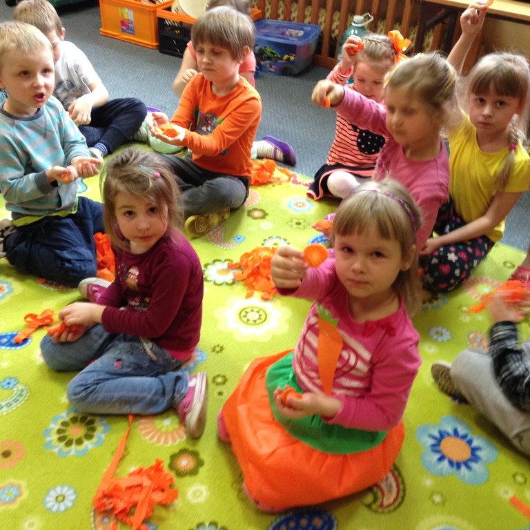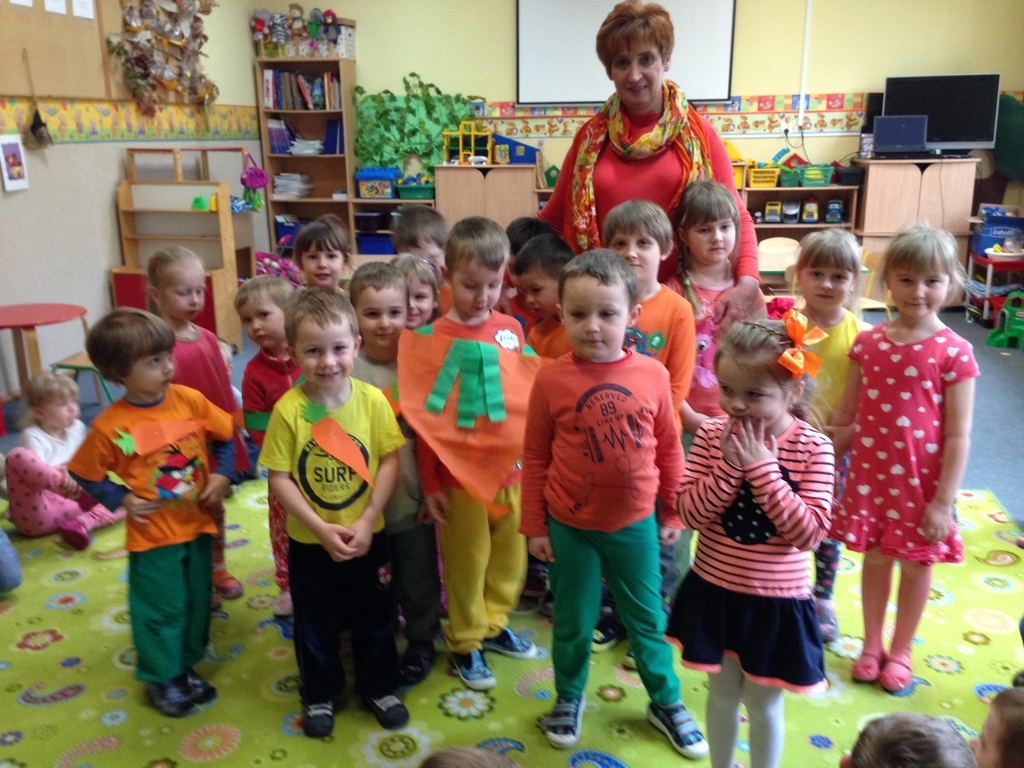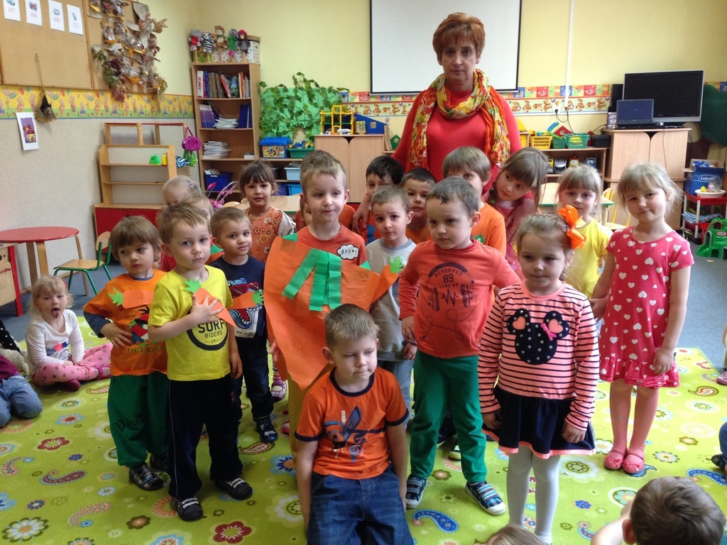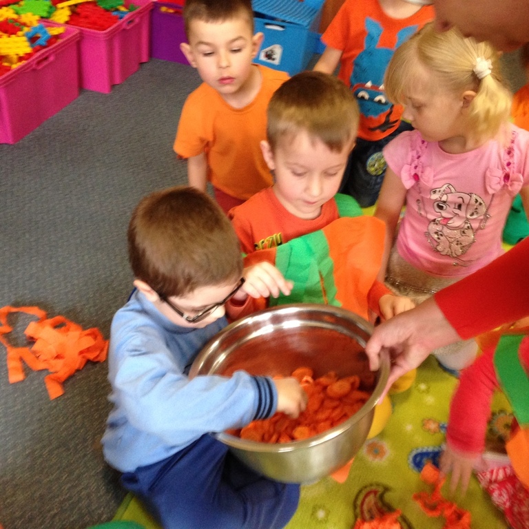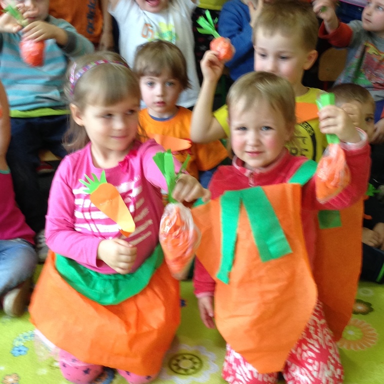 Całe nasze przedszkole zamieniło się w wielkie marchewkowe pole. Wszyscy ubrani byliśmy na pomarańczowo.