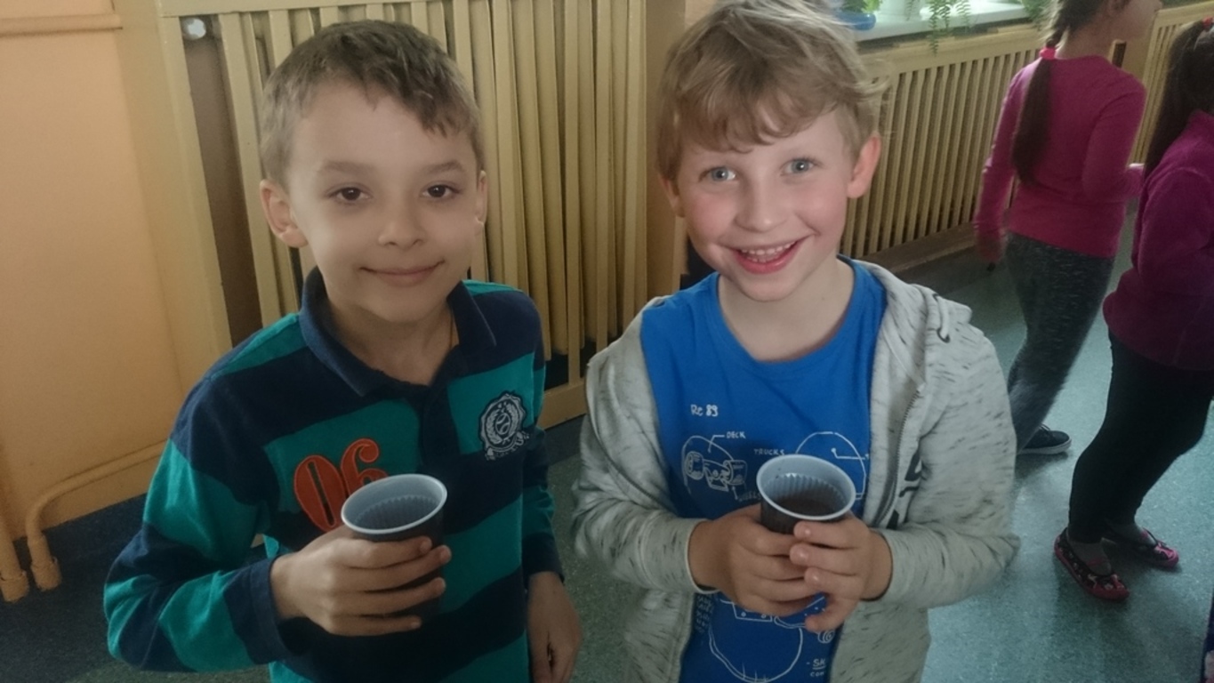 Czekolada zdrowa jest, wiedzą wszyscy, którzy 12 kwietnia stali w kolejce za kubkiem gorącej czekolady. Byli też i tacy kupujący, którym zabrakło rąk do trzymania kubeczków. W tym roku zebraliśmy 190 złotych, czyli 190 czekolad osłodziło nam życie. Miało wpływ na nasz dobry humor, piękną cerę i uzupełniło nasz poziom magnezu. Brawo czekolada, brawo uczniowie i panie nauczycielki.