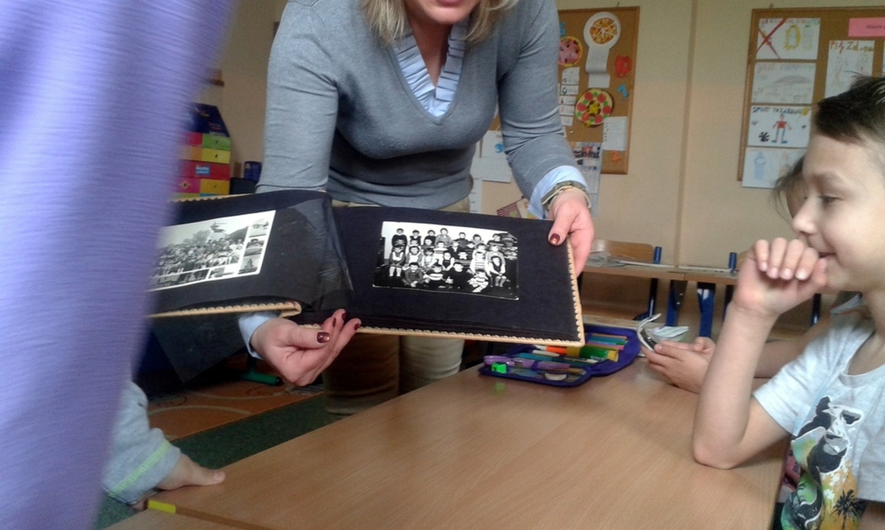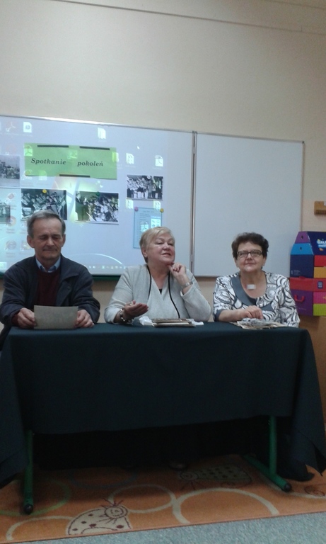 W ramach obchodów stulecia naszej szkoły organizowane są w klasach „Spotkania pokoleń”. W dniach 12 i 13 kwietnia br. spotkania z absolwentami naszej szkoły odbyły się w klasie II b. Gośćmi spotkania, a zarazem absolwentami szkoły byli dziadkowie i rodzice drugoklasistów. Spotkania przeprowadzono metodą projektu. Nosiły one tytuł: „Opowiedz mi babciu, opowiedz mi mamo …”. Celem zajęć było zapoznanie dzieci z historią szkoły, poznanie warunków nauki w dawnej szkole, obserwowanie zmian zachodzących w edukacji oraz w najbliższym otoczeniu naszej szkoły.