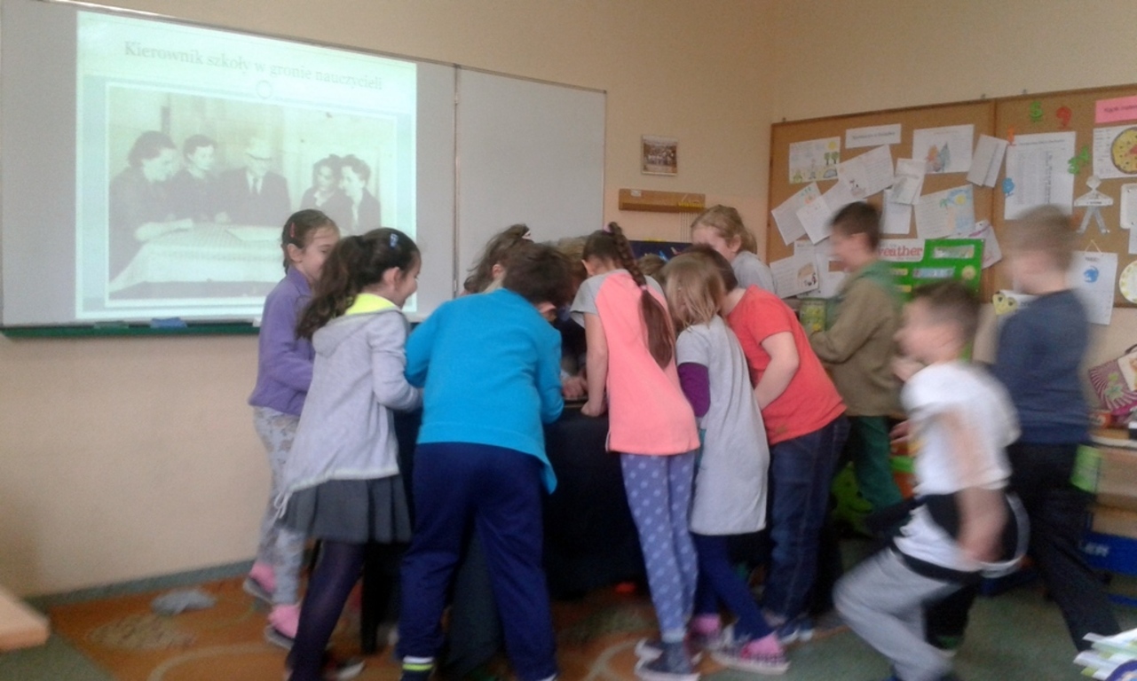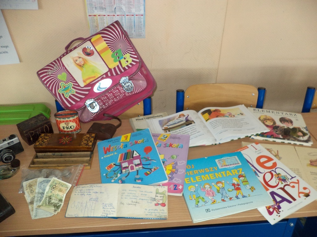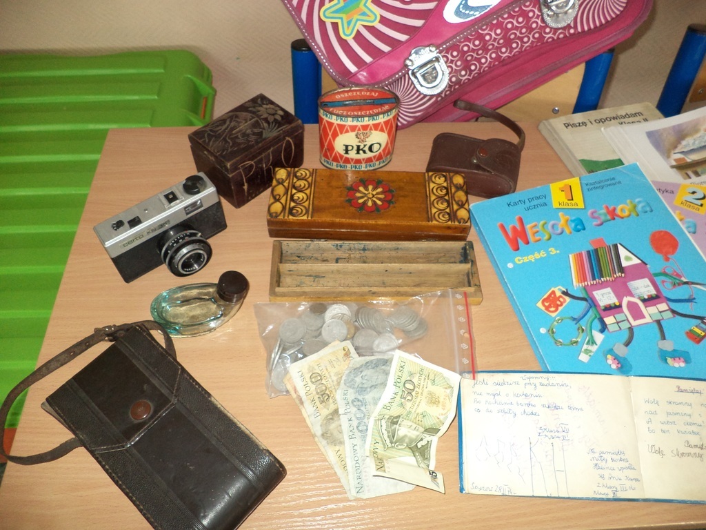 Dzięki zaangażowaniu rodziców w klasie urządzono wystawkę, na której znalazły się stare podręczniki, kałamarz, skarbonki, tornister oraz drewniane piórniki, aparaty fotograficzne i banknoty. Zebrane starocie budziły zaciekawienie zarówno gości jak i uczniów.