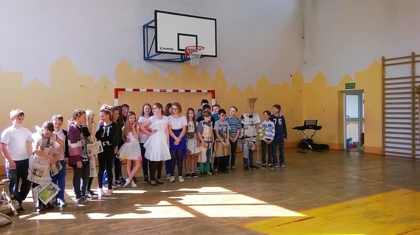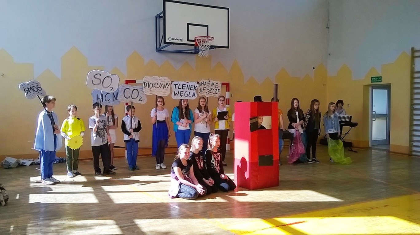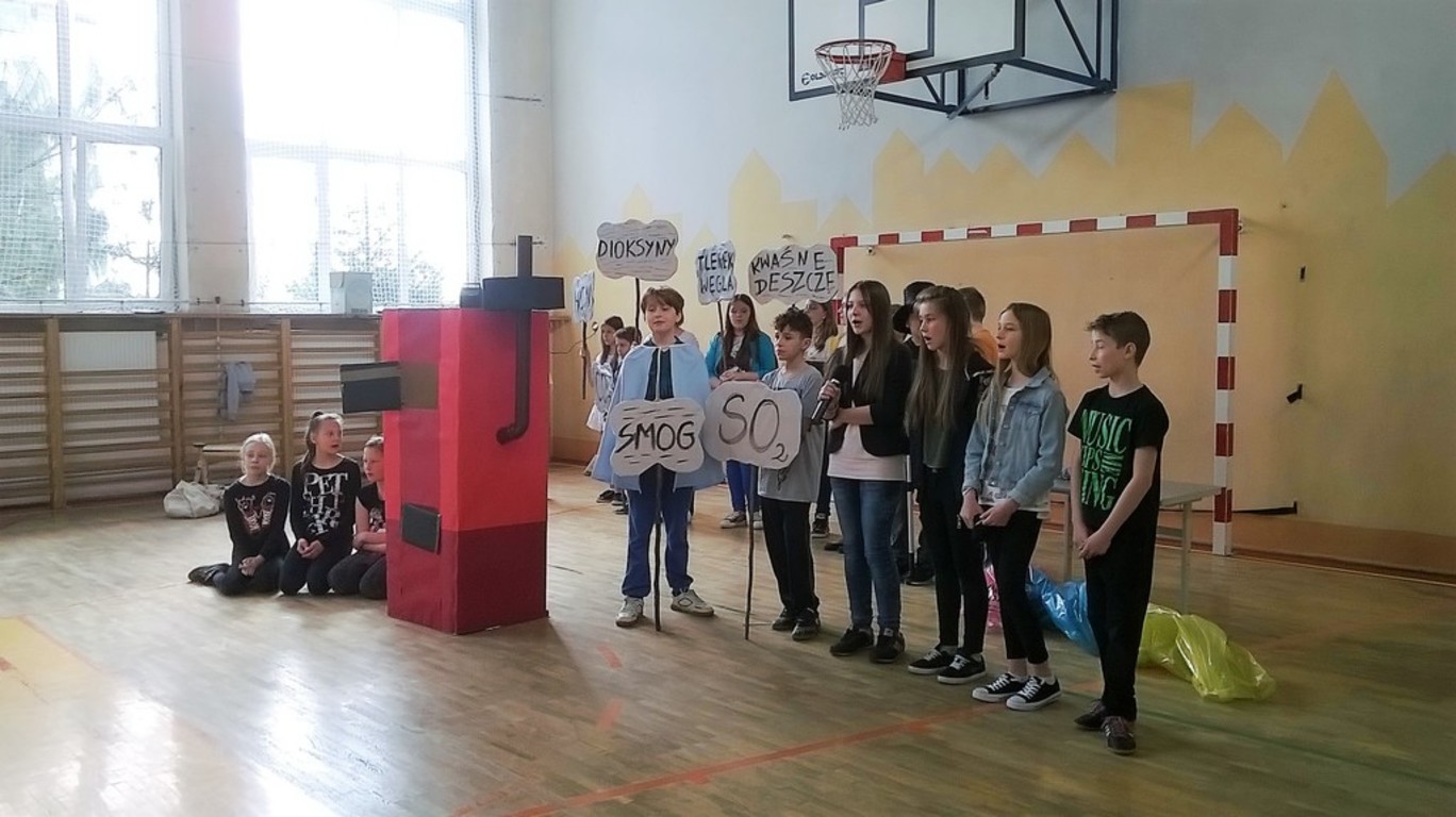 Angażując się w obchody tematycznej akcji proekologicznej uczniowie klasy V przygotowali dla społeczności szkolnej inscenizację pt. „Chory komin, czyli kochasz dzieci, nie pal śmieci”.