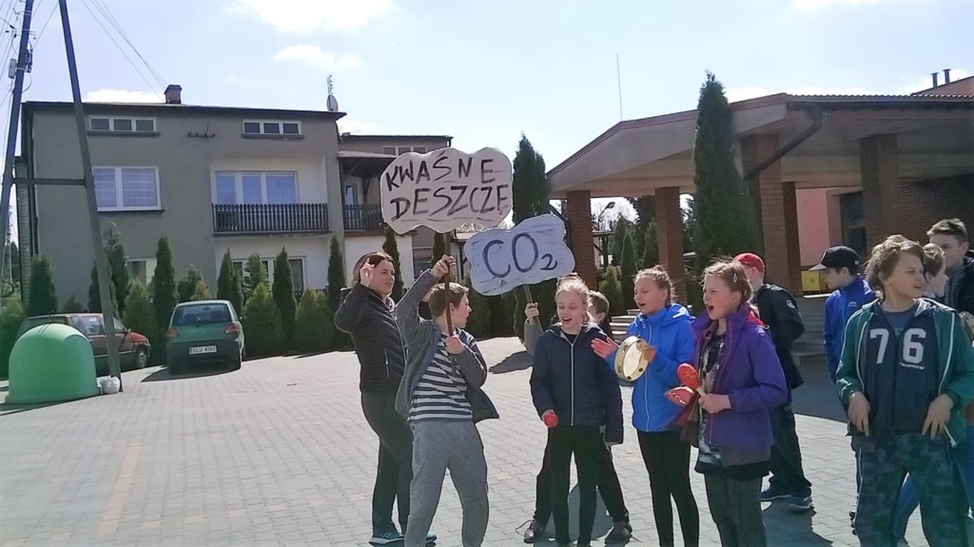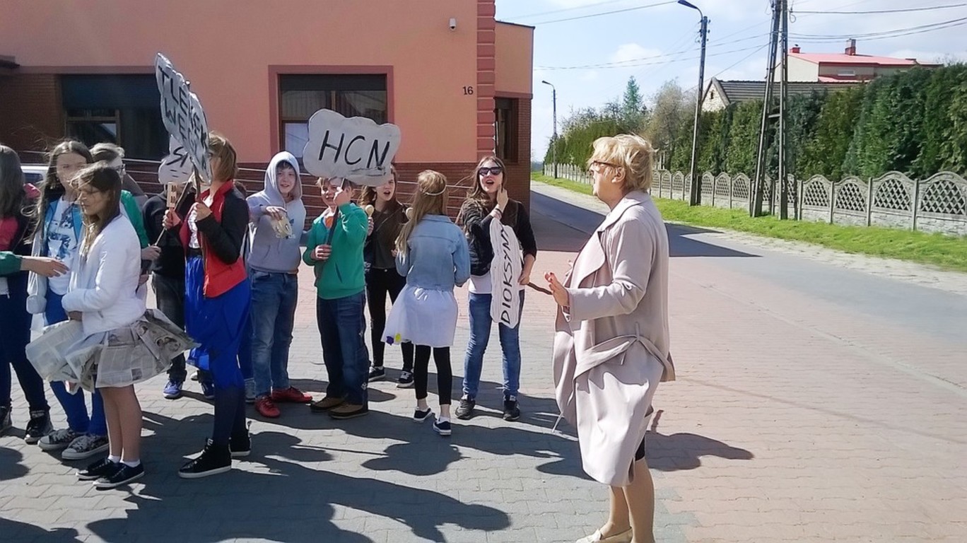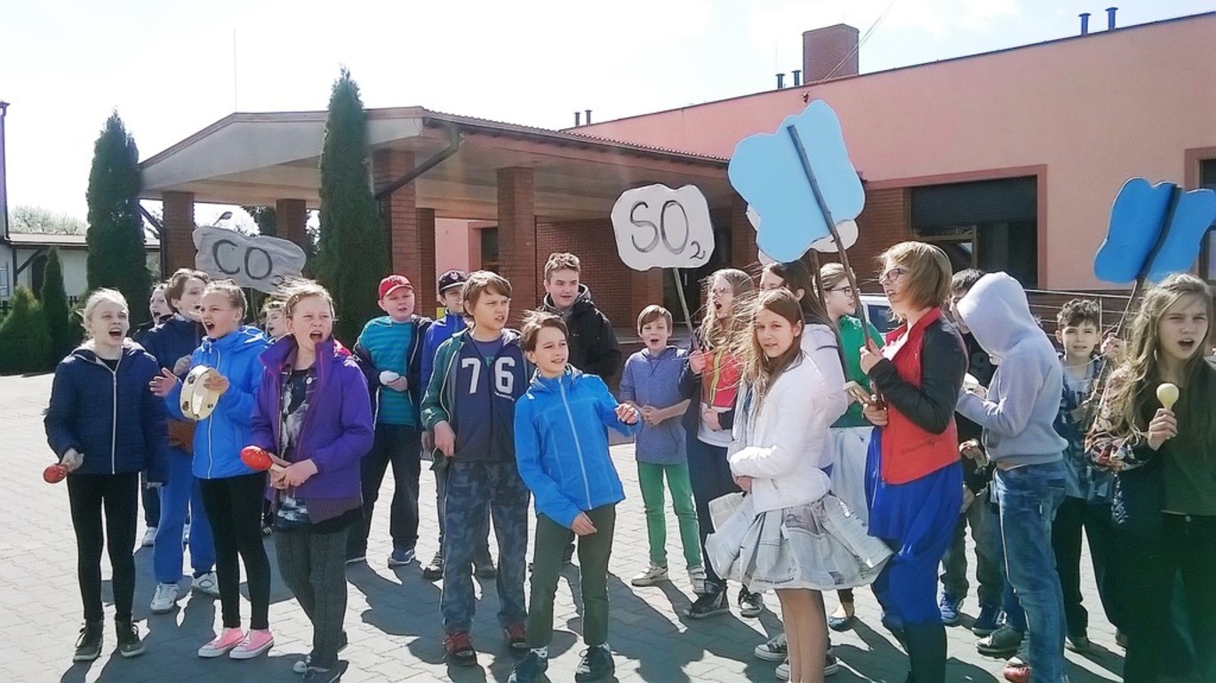Celem przedstawienia była wizualizacja problemu zanieczyszczenia powietrza, a wyjście poza szkołę miało charakter happeningu.