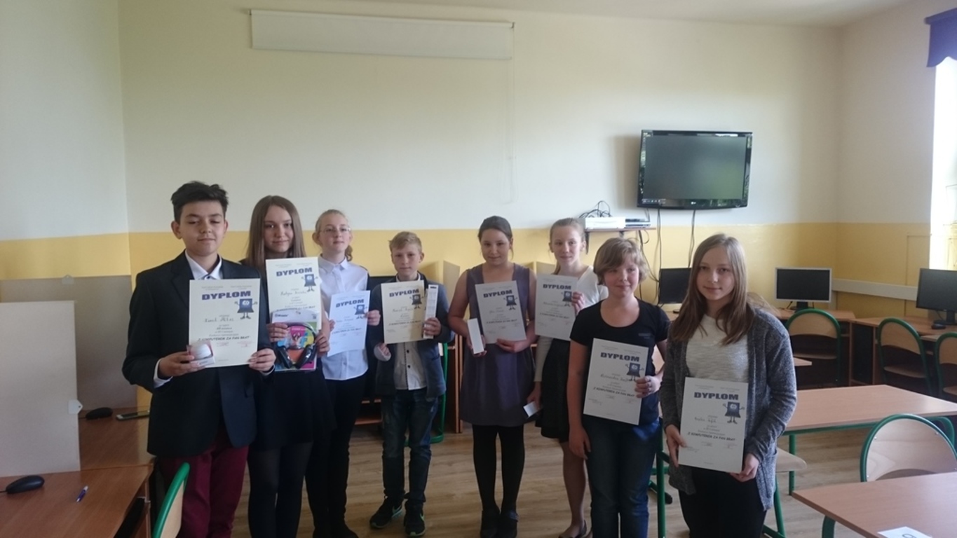 Miło nam poinformować, że tegoroczny konkurs wygrała Martyna Borówka uczennica z klasy VI, naszej szkoły. II miejsce zajął Marcel Rogala, uczeń klasy VI ze Szkoły Podstawowej w Bobrownikach. III miejsce zdobył Karol Mitas, uczeń z klasy VI, także z naszej szkoły.
