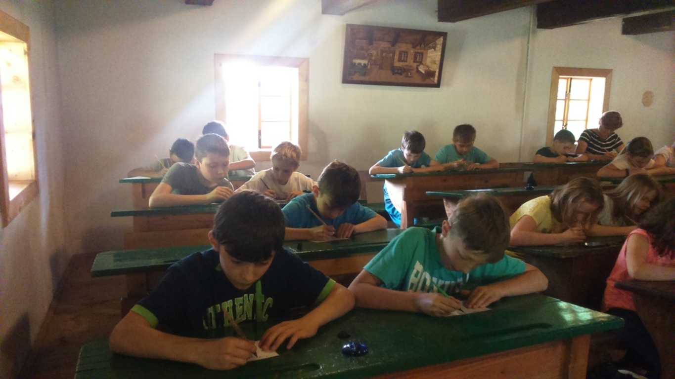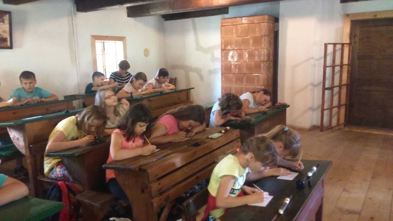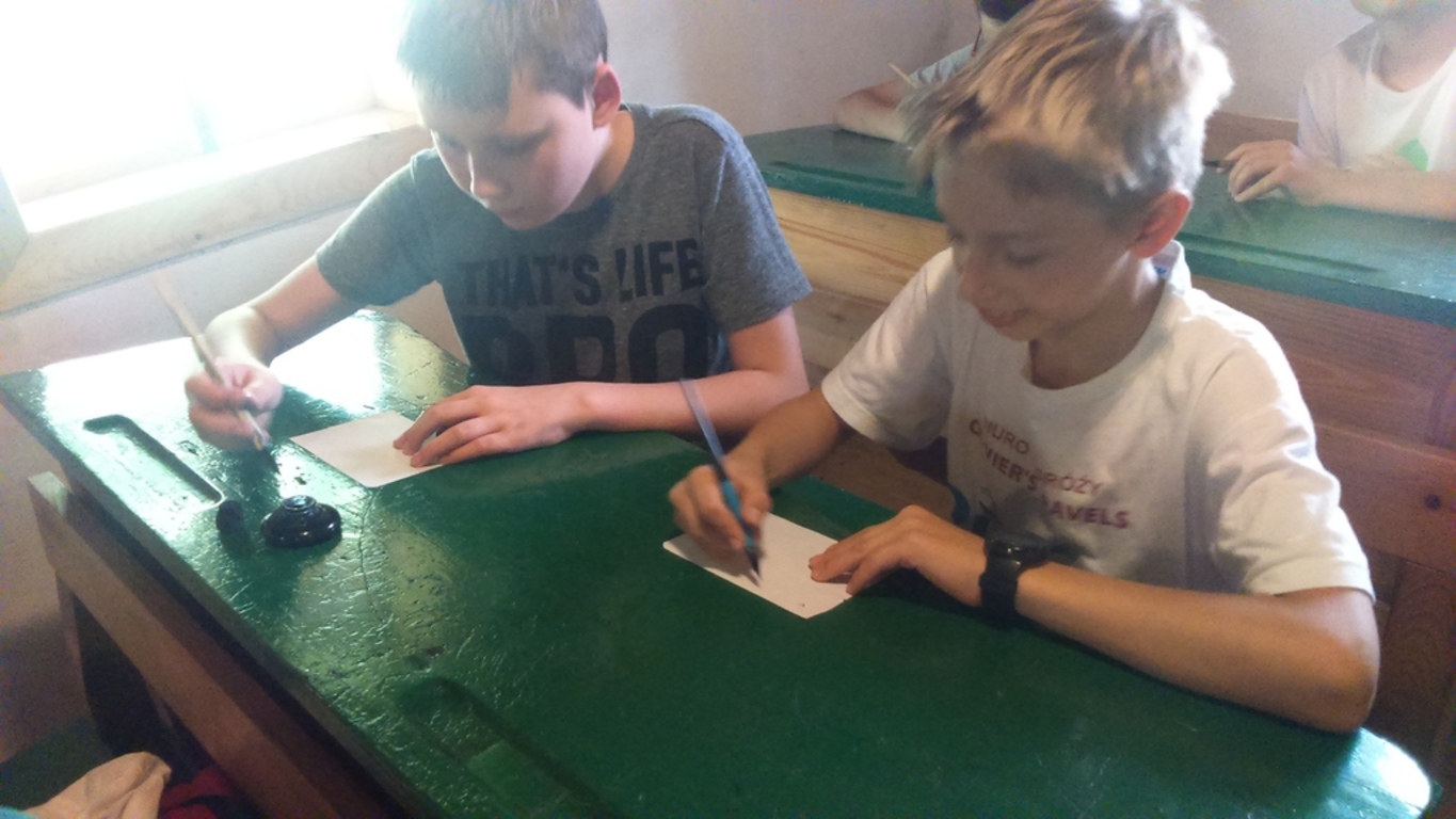 Tegoroczny Dzień Dziecka spędziliśmy w Górnośląskim Parku Etnograficznym w Chorzowie, gdzie mieliśmy okazję zobaczyć wnętrza starych chat i zabudowań gospodarskich. Największą atrakcją pobytu w skansenie była niezapomniana lekcja w starej szkole, podczas której przenieśliśmy się do czasów szkolnych lat naszych dziadków i pradziadków. Siedząc w dawnych ławach, wcieliliśmy się w uczniów sprzed stu lat i na własnej skórze przekonaliśmy się, jak to dawniej w szkole było…