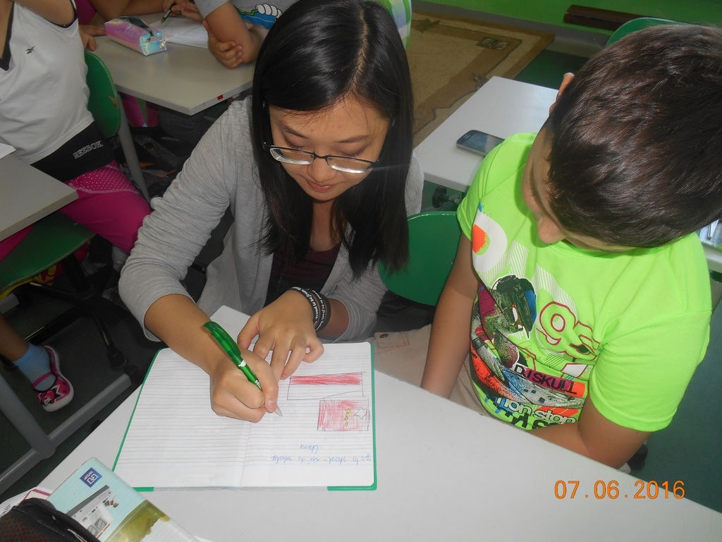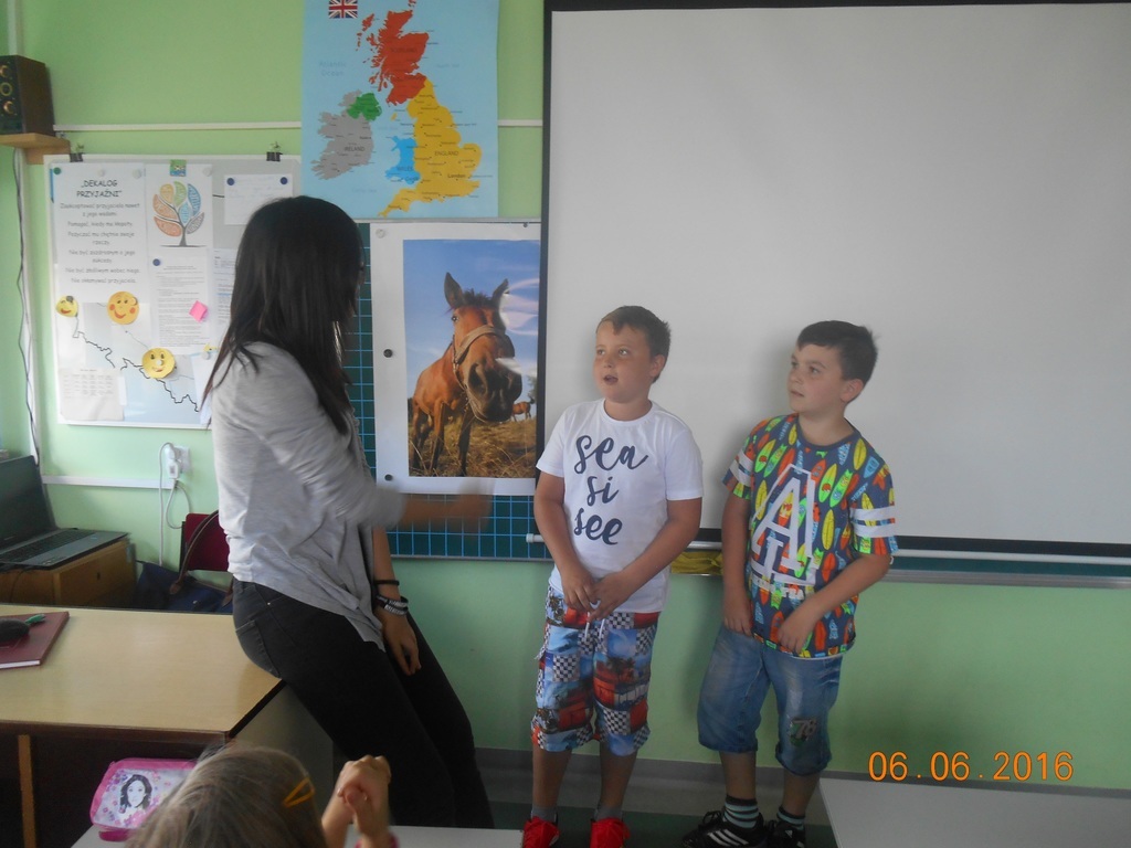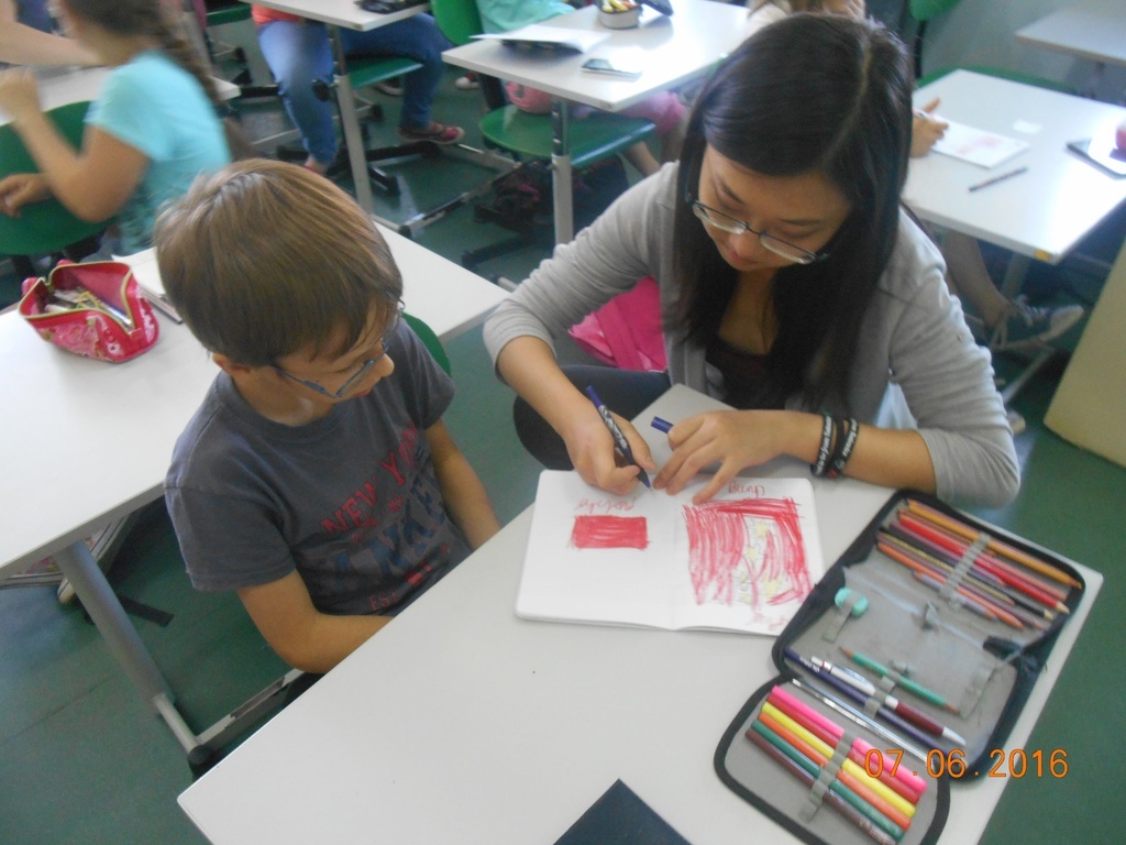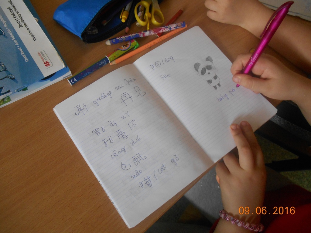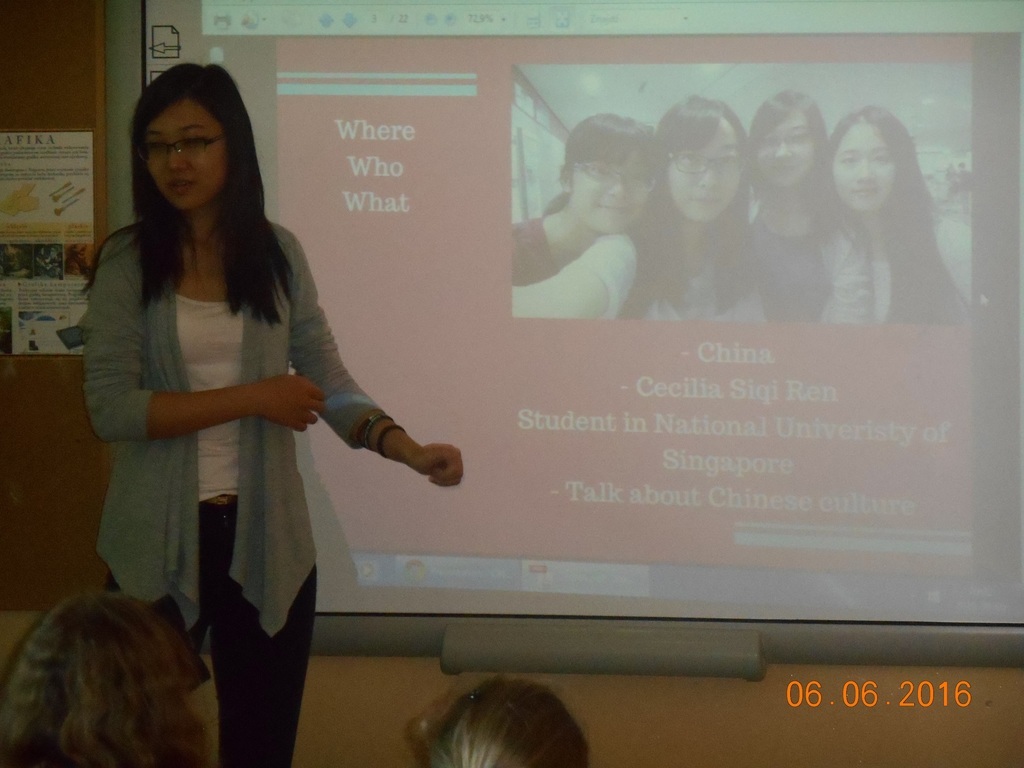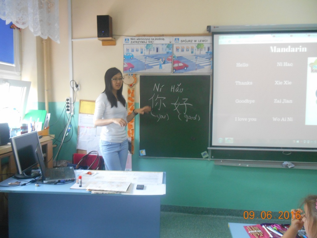 Oprócz poznawania kultury i zwyczajów innego kraju nasi uczniowi mieli też okazję poćwiczyć w praktyce komunikację w języku angielskim, co zresztą im się udało. Cecilia (Siqi Ren) odpowiadała na liczne pytania ciekawych świata dzieci, które pytały o życie w jej kraju, o rówieśników, o ulubione potrawy, muzykę, miejsca. Pytaniom nie było końca.