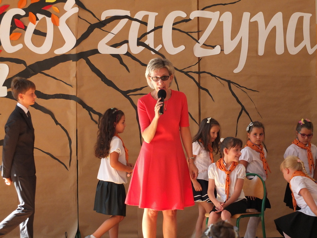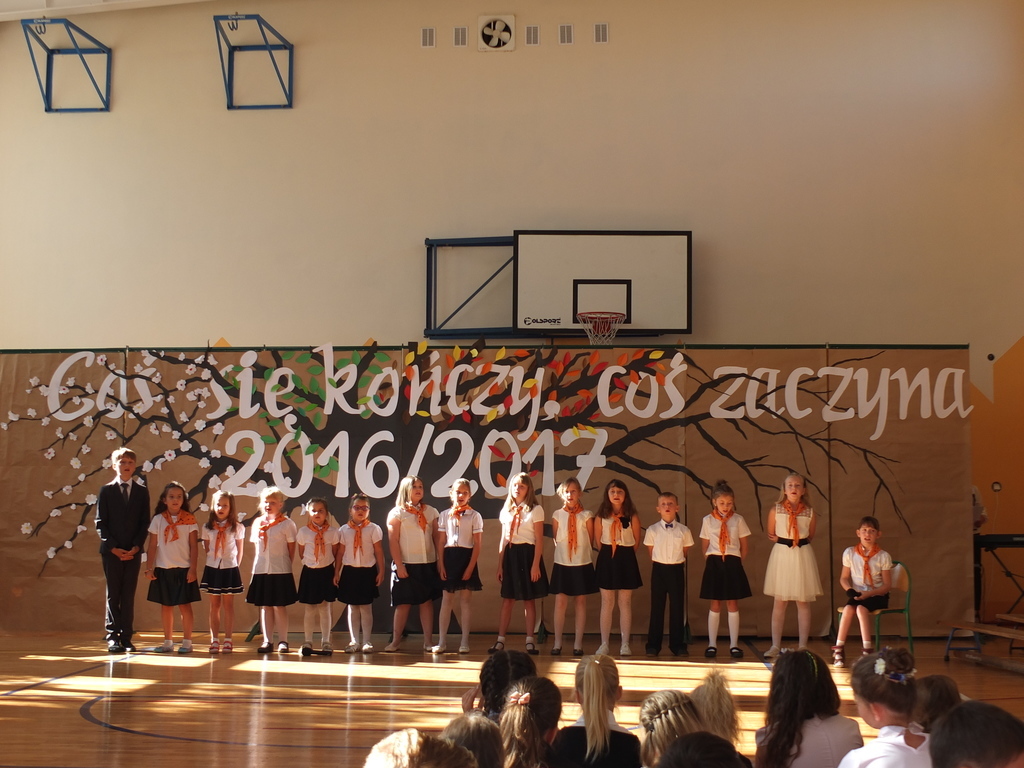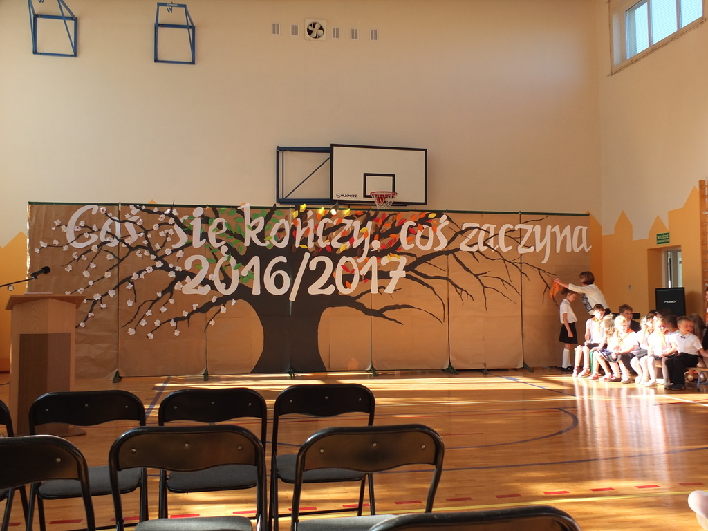 Po dwóch miesiącach wypoczynku, wakacyjnych wyjazdów, pełni energii wracamy, by powitać nowy rok szkolny. Rok ten jest wyjątkowy choćby dlatego, że nie ma wśród nas uczniów klasy I. Z tego powodu liczba uczniów zmniejszyła się do 146. Niemal wszyscy pojawiliśmy się o godzinie 8 w kościele, by następnie udać się na odnowioną salę gimnastyczną. Tutaj pani dyrektor przywitała zaproszonych gości, a także rodziców, nauczycieli oraz uczniów. Pokrótce opowiedziała o tym, co czeka nas w nadchodzącym roku szkolnym. Poznaliśmy wychowawców poszczególnych klas, a także nowych nauczycieli, którzy zasilą grono tych dobrze nam już znanych. Pani dyrektor przybliżyła nam też program zbliżających się wielkimi krokami obchodów jubileuszu stulecia szkoły, które będą miały miejsce 7 i 8 października tego roku, a do których przygotowania trwają już od wielu miesięcy. Kolejne zagadnienie poruszone przez panią dyrektor to reforma oświaty, która ma zostać wprowadzona od przyszłego roku szkolnego. Ma ona polegać m. in. na powrocie do ośmioletniej szkoły podstawowej i na likwidacji gimnazjów.