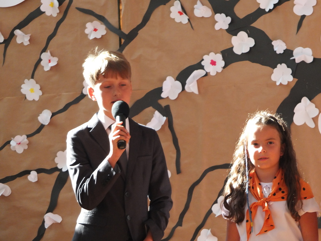 Po części oficjalnej przyszedł czas na występy naszych młodszych kolegów, którzy przygotowali dla nas krótki montaż słowno-muzyczny traktujący o wakacjach i powrocie do szkoły. I wtedy uświadomiliśmy sobie, że dwa miesiące beztroskiego odpoczynku już za nami i że czas wracać do szkoły. Ale to dobrze, bo przed nami wiele miesięcy nie tylko pożytecznej przecież nauki, ale też niezapomnianych wrażeń związanych ze szkolnymi wycieczkami, imprezami i codziennymi spotkaniami na szkolnych korytarzach. Tak więc...witaj szkoło!!!