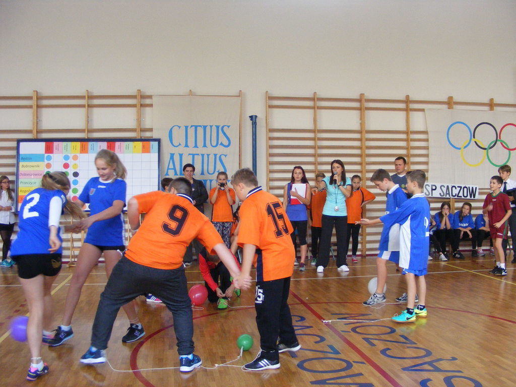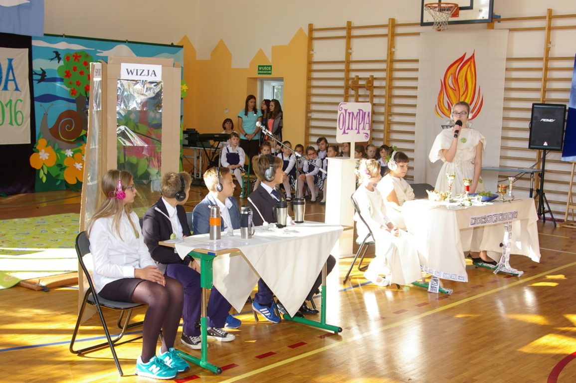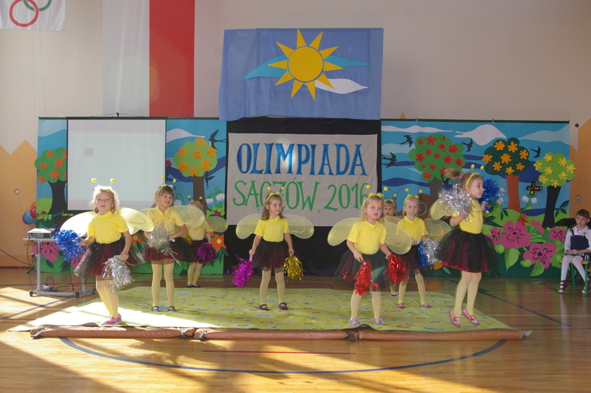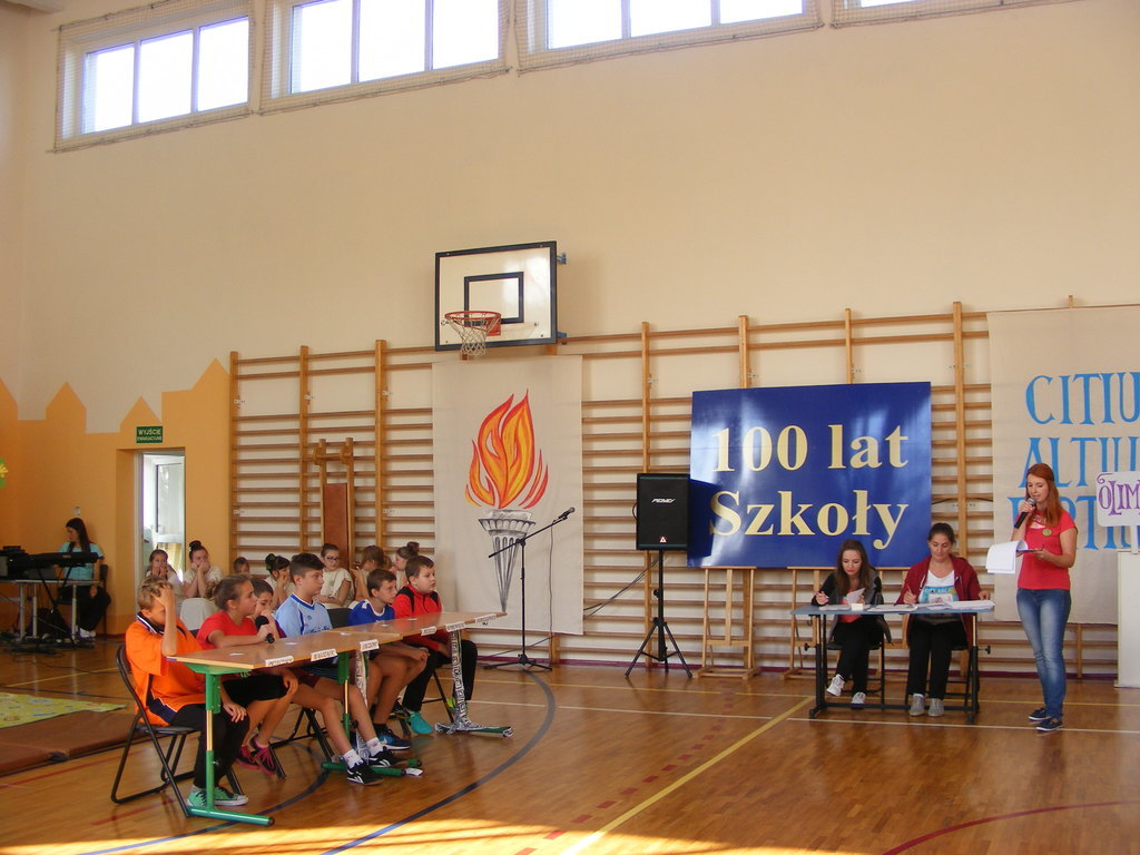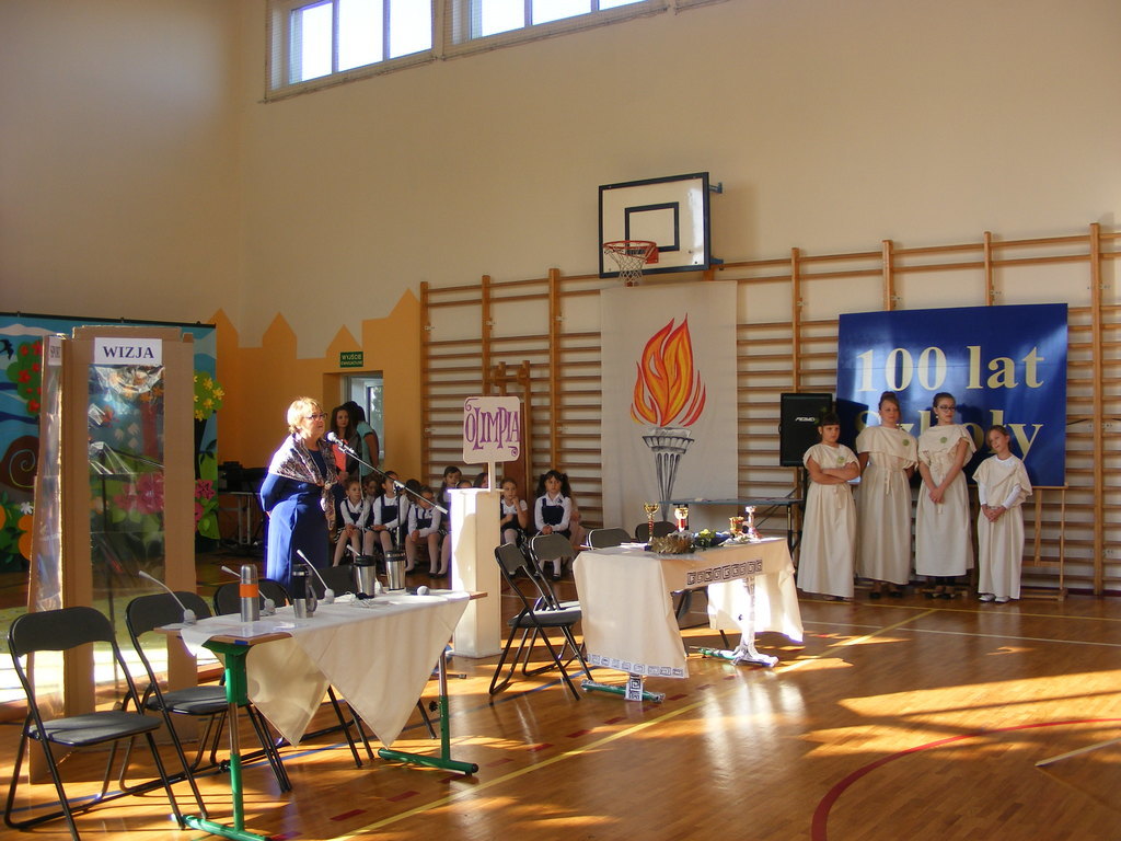 W dniu 7 października od rana było gorąco niczym w lipcu na wczasach w Grecji. Szkoła w Sączowie obchodziła pierwszy dzień hucznych obchodów stulecia szkoły. Atmosferę podgrzała nie tylko olimpiada sportowa, ale także występy dzieci oraz pełni werwy i zapału komentatorzy sportowi, którzy w pocie czoła, nieraz tylko siląc się ambrozją, opowiadali o historii igrzysk olimpijskich.