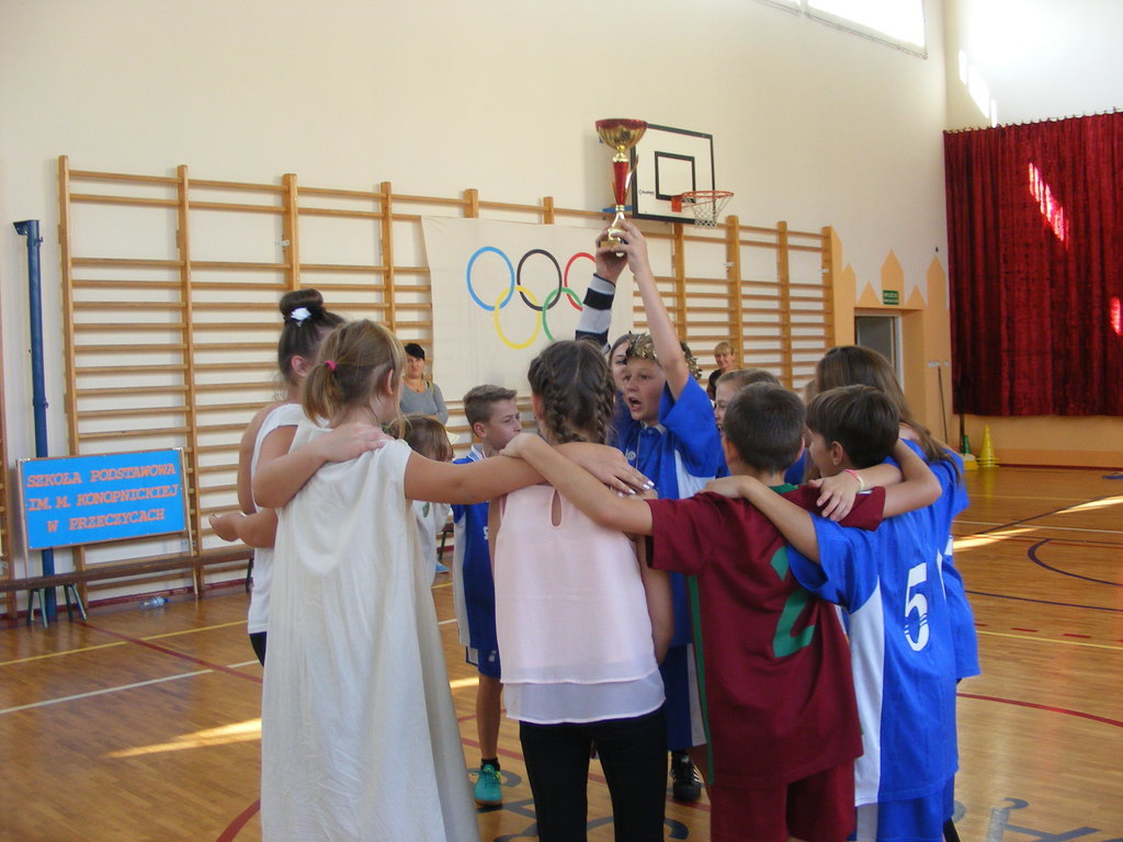 Zmagania zawodników rozpoczęły się od rozgrywki intelektualnej. Przedstawiciele drużyn musieli wykazać się wiedzą na temat olimpizmu starożytnego i współczesnego. Następnie rozpoczęły się zmagania sportowe w dziewięciu konkurencjach, były m.in. wyścigi płetwonurków, rydwanów oraz bieg w uzbrojeniu. Zawodnicy walczyli mężnie i dzielnie niczym herosi i tytani, a na podium stanęły ostatecznie trzy szkoły. Pierwsze miejsce zdobył Zespół Szkolno-Przedszkolny w Sączowie, drugie Szkoła Podstawowa nr 6 z Będzina, trzecie Szkoła Podstawowa w Bobrownikach. Gratulujemy serdecznie także zawodnikom z Rogoźnika, Przeczyc i Dobieszowic, którzy zdobyli kolejno czwarte, piąte i szóste miejsca.