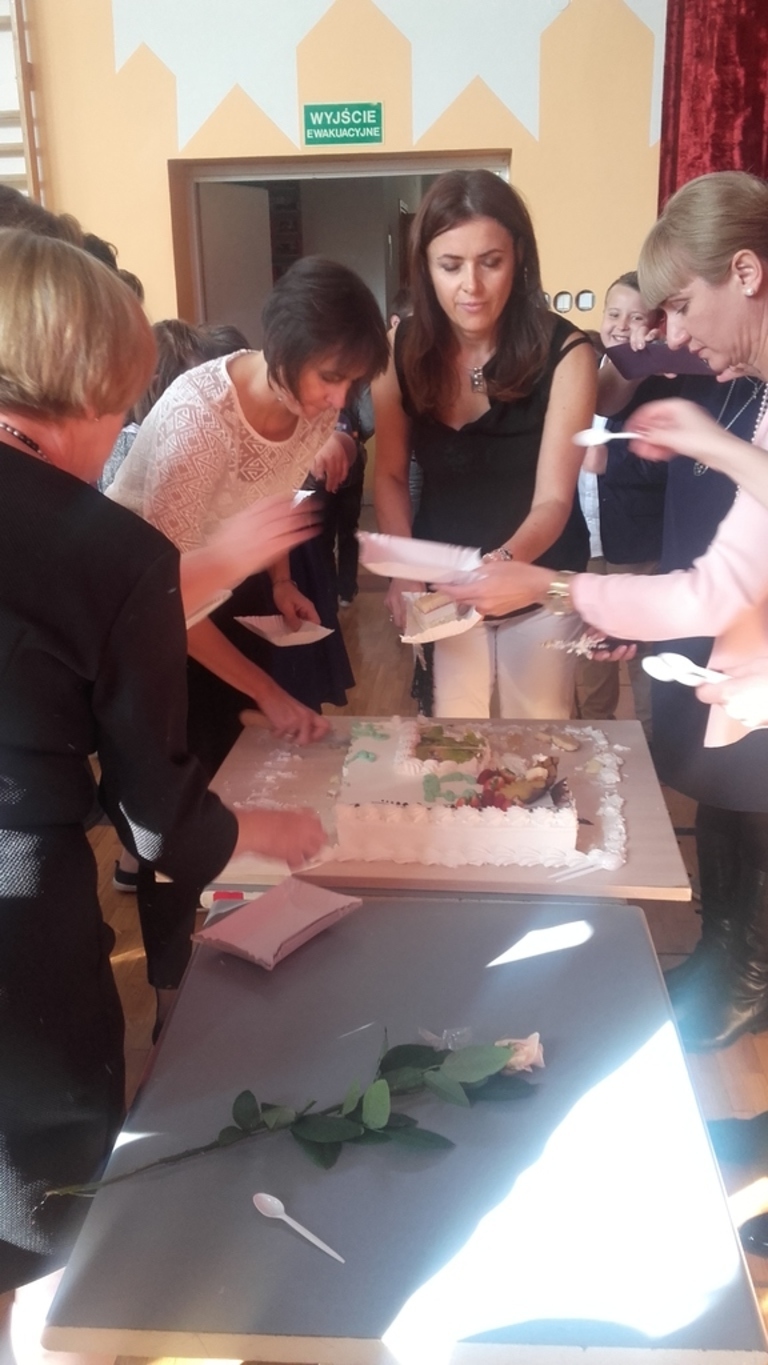Pani dyrektor i Grono Pedagogiczne podziękowały Dzieciom za występy i życzenia wspaniałym tortem.