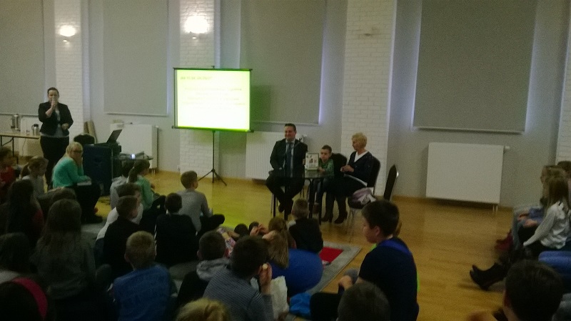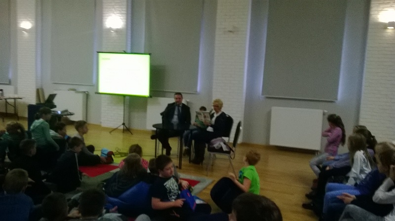 W dniu 3 listopada odbyło się kolejne spotkanie promujące czytelnictwo wśród dzieci z cyklu: "Czytanie łączy pokolenia" w ramach kontynuacji współpracy naszej placówki z Biblioteką Publiczną w Sączowie. Uczniowie szkół z Dobieszowic i Sączowa wysłuchali wspaniałej opowieści o podróżach czytelniczych Wójta Gminy Bobrowniki pana Arkadiusza Ziemby. O tym jak on sam zawsze chętnie czytał będąc dzieckiem opowiedziała zebranym pani Honorata Ziemba - mama wójta. Podkreśliła też jak duży wpływ ma systematyczne czytanie na rozwój wyobraźni, powiększenie zasobu słownictwa oraz łatwość pisania wypracowań. Do świata swoich pierwszych lektur zaprosił nas syn pana Arkadiusza - Pawełek. Państwo Ziembowie wspólnie odczytali fragment ulubionej książki Pawełka, czyli "Piątka z Zakątka" Krystyny Drzewieckiej.