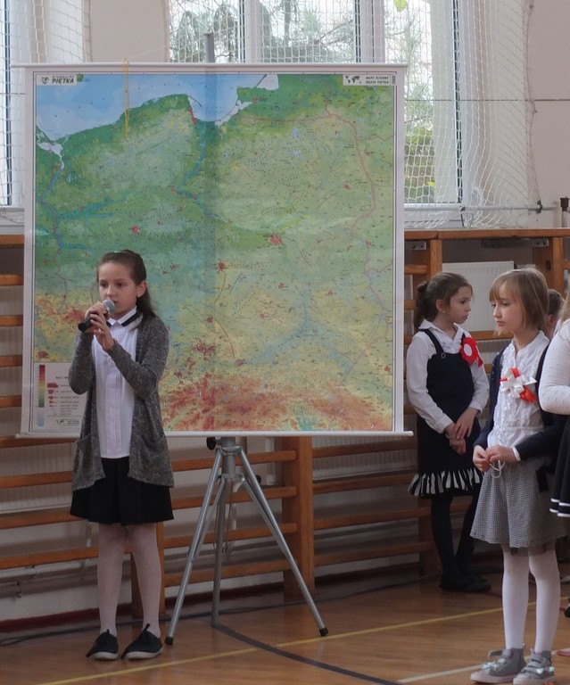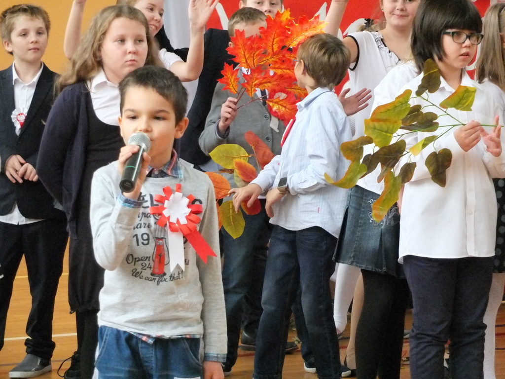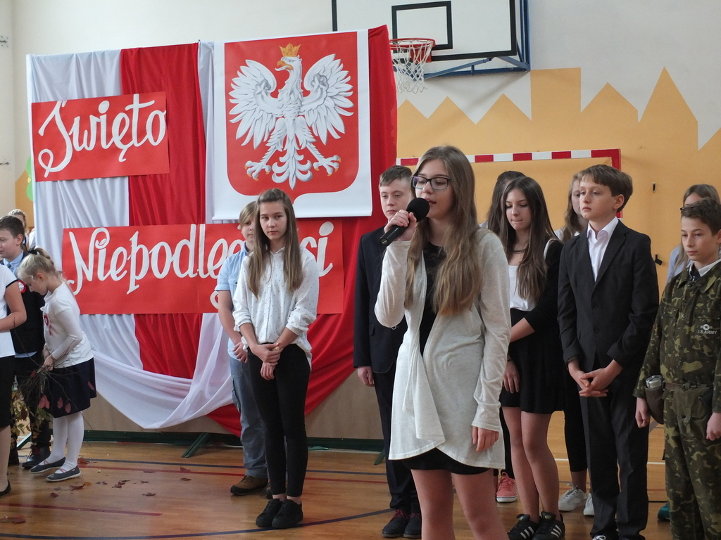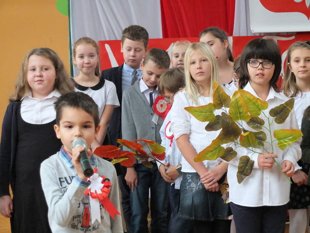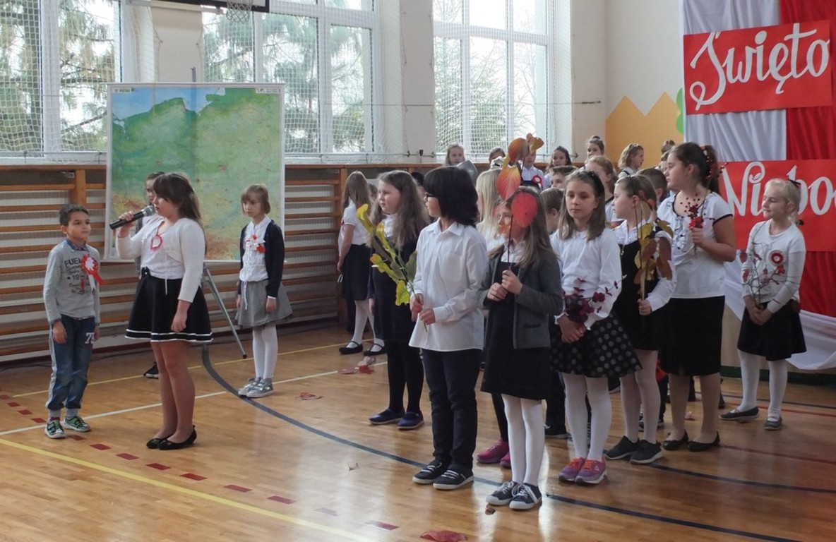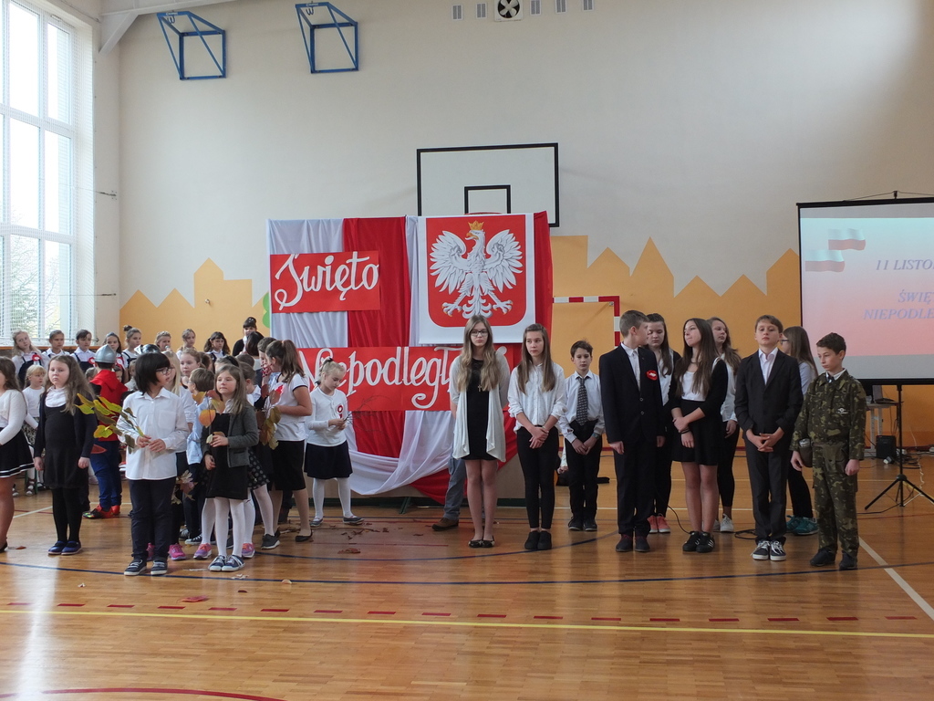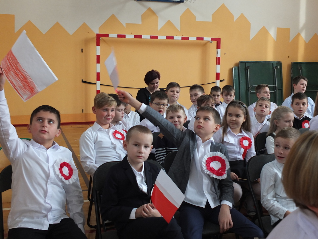 Z okazji 98 rocznicy odzyskania niepodległości przez Polskę w naszej szkole odbyła się uroczysta akademia. Uczniowie klasy IV i VI wystąpili przed całą szkołą, by pokazać, w jaki sposób przed laty Polska utraciła niepodległość i jak nasi rodacy walczyli o wolność.