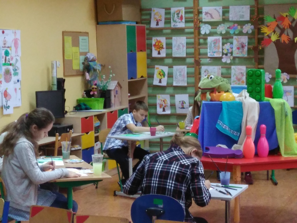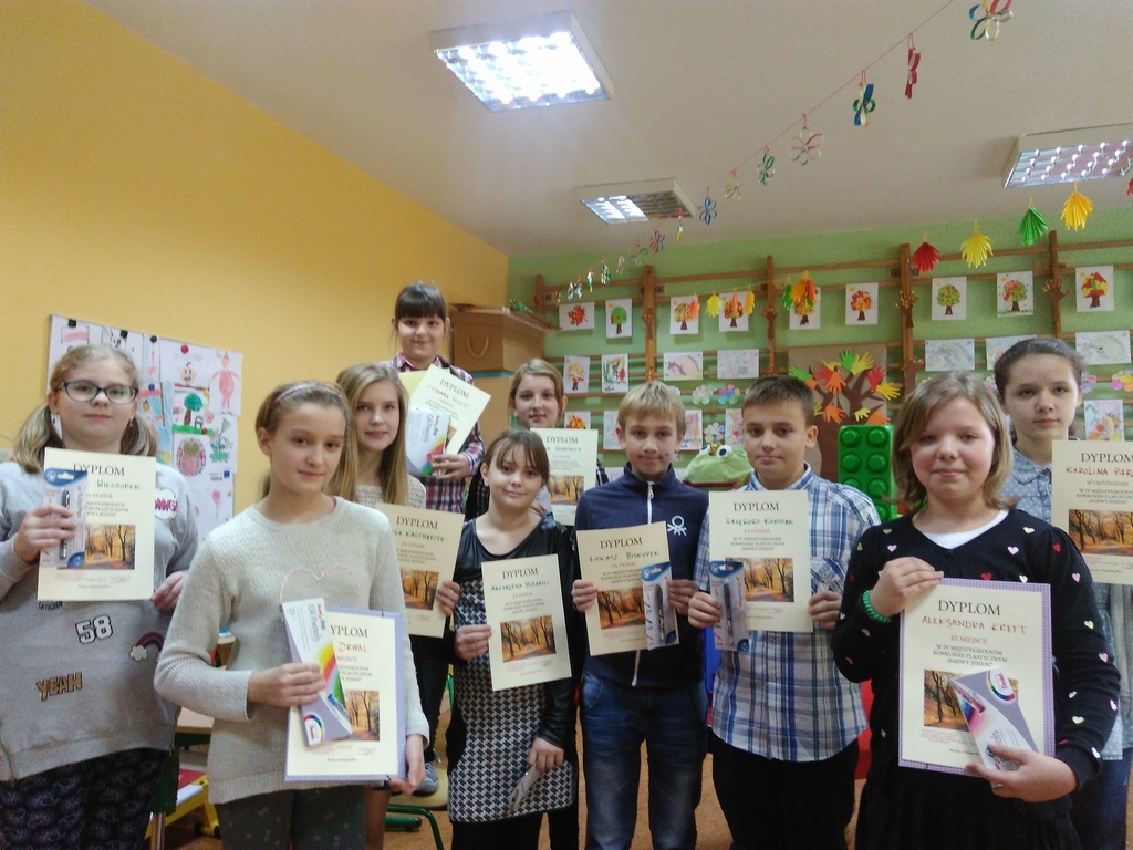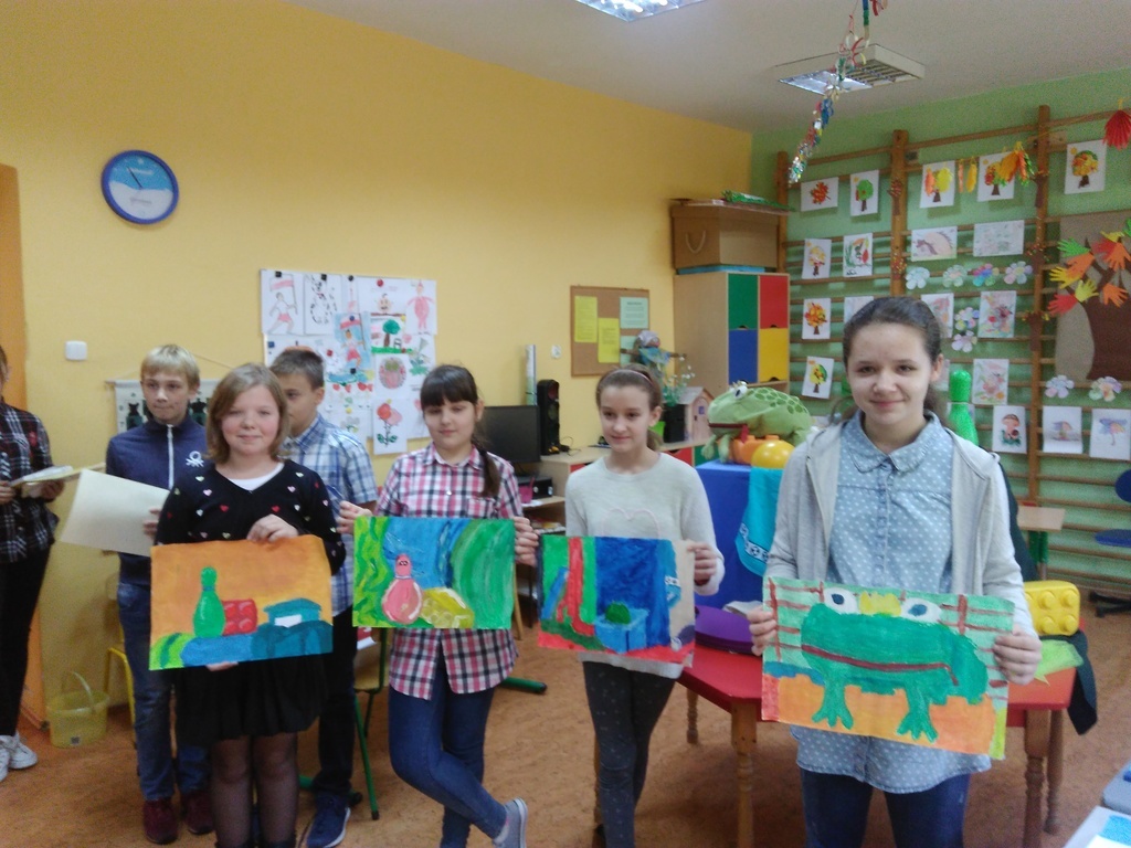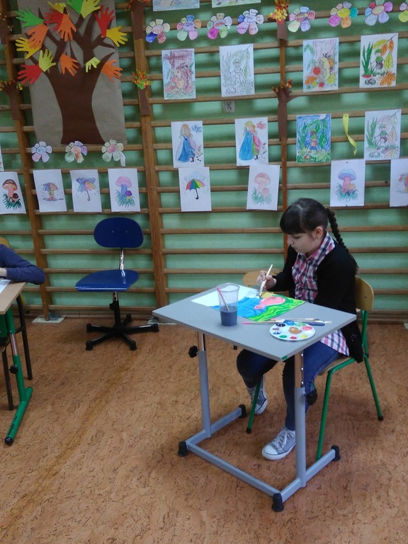 Po raz V zaprosiliśmy sąsiednie szkoły do udziału w Międzygminnym Konkursie Plastycznym "Barwy jesieni". 23 października spotkaliśmy się wszyscy na II etapie konkursu. Naszym zadaniem plastycznym było namalowanie fragmentu lub całości martwej natury, ułożonej specjalnie dla nas. Wykorzystaliśmy na maksa czas na malowanie, powstały piękne prace - wszystkie. Wśród tych ciekawych prac Jury wybrało prace, które zostały nagrodzone.