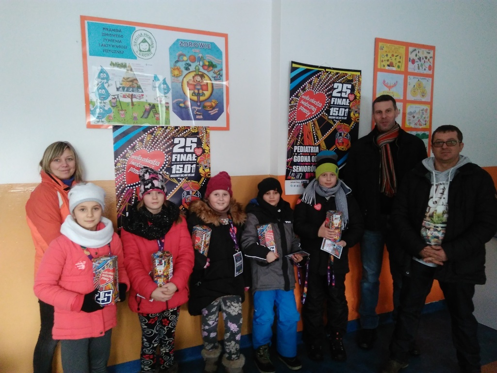 Już po raz szósty w Zespole Szkolno-Przedszkolnym działał sztab WOŚP. Wczesnym rankiem wyruszyli stąd wolontariusze, by ze skarbonkami kwestować i "grać" w wielkiej orkiestrze. Było ich 21. Szefową Sztabu jest niezmiennie p. Izabela Gielnik.