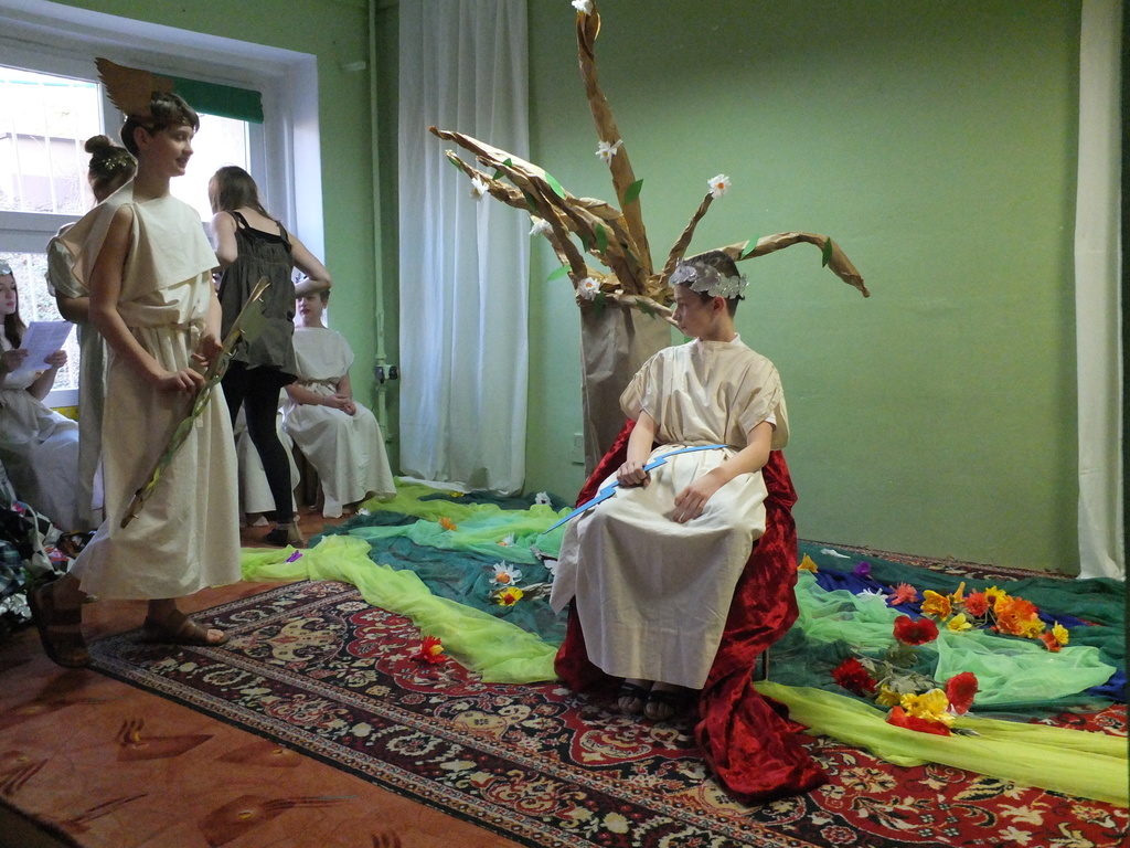 Konkurs rozpoczął się od wystawienia przedstawienia pt. „Demeter i Kora”, które wraz ze swoimi uczniami przygotowała p. Milena Caban. Następnie rozpoczął się konkurs wiedzy, w którym uczniowie wykazać się mieli nie tylko dobrą pamięcią, ale też nieszablonowym podejściem do tematu. Uczestnicy wcielali się w role bogów i postaci mitologicznych, szukali nadawców i adresatów listów w butelkach, wsłuchiwali się w głosy i dźwięki, aby skojarzyć je z odpowiednią sceną z mitologii oraz losowali atrybuty i przypisywali je odpowiednim bogom.