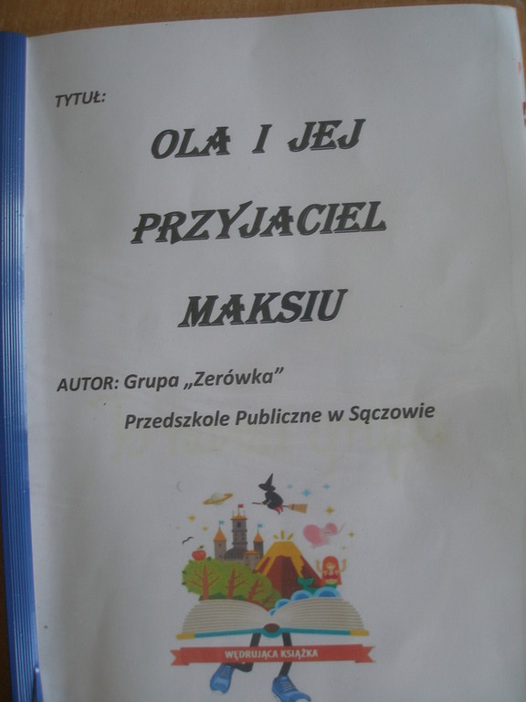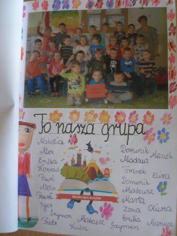 Dzieci z grupy „Zerówka” w listopadzie 2016 r. przystąpiły do realizacji ogólnopolskiego projektu „Wędrująca książka”. Uczestnictwo w projekcie polegało na tworzeniu książek. Do projektu przystąpiło kilkaset placówek z całej Polski.W ramach projektu pracowaliśmy w zespołach z całej Polski. Każdy zespół tworzyło 10 placówek. Jako uczestnicy projektu tworzyliśmy zamknięta grupę utworzoną przez wychowawczynie za pomocą portalu społecznościowego.