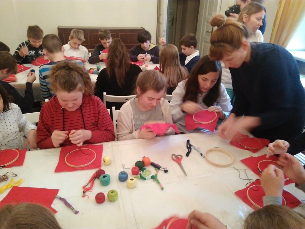 Za nami kolejne spotkanie w Muzeum Zagłębia w Będzinie, w ramach projektu edukacyjnego. Tym razem w warsztatach poświęconych hafciarstwu uczestniczyła klasa V. Na początku ogladaliśmy prezezntację, którą omawiała pani etnograf Anna Góra. Dowiedzieliśmy się z niej o historii hafciarstwa, na jakich terenach jeszcze istnieje ten zawód oraz poznaliśmy różne rodzaje haftów. Następnie czekała już na nas pani hafciarka i "sprzęt": bębenek, kordonki, mulina i piękne wzory na serwetkach. Jak wygladały nasze pierwsze prace z igłą i kolorowymi ściegami zobaczcie sami. Na koniec wszyscy stwierdzili, że SUPER warsztaty.