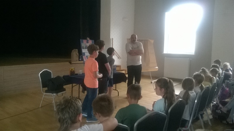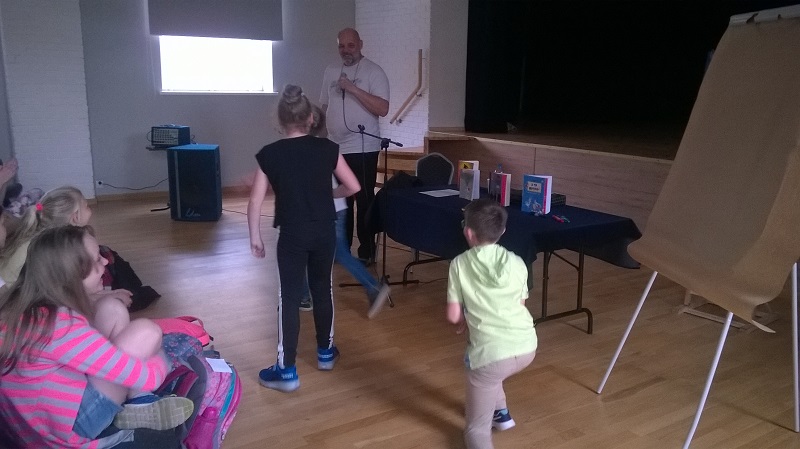 Jak na pisarza przystało, po krótce przedstawił swoją osobę, opowiedział jak doszło do napisania pierwszych opowiadań, kiedy i dlaczego napisał pierwszą książkę, odpowiedział na wiele pytań zadawanych przez naszą młodzież.