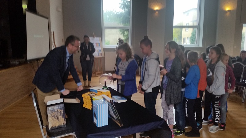 Na samym końcu spotkania nadeszła pora rozmowy z pisarzem. Uczniowie zadawali nurtujące ich pytania. Później wszyscy stanęli do wspólnego zdjęcia. Na koniec autor rozdawał autografy i sprzedawał swoje książki z dedykacjami. Wszyscy bezpiecznie i szczęśliwie dotarli do szkoły z plecakiem pełnym wrażeń.