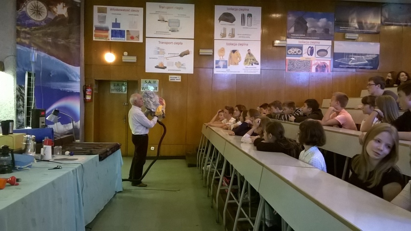 27 września uczniowie klasy VI i VII brali udział w wykładach z pokazami eksperymentów z fizyki i przyrody pod hasłem „Osobliwości Świata Fizyki” 2017, które odbyły się w salach audytoryjnych Instytutu Fizyki, Uniwersytetu Śląskiego w Katowicach. Na trzech odrębnych wykładach: „Elektromagnetyzm wokół nas”, „Fizyka na wakacjach”, „Ciepło, zimno, gorąco, mróz!„ uczniowie zapoznali się z praktycznym zastosowaniem praw fizyki w urządzeniach technicznych ułatwiających życie.