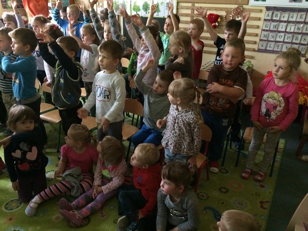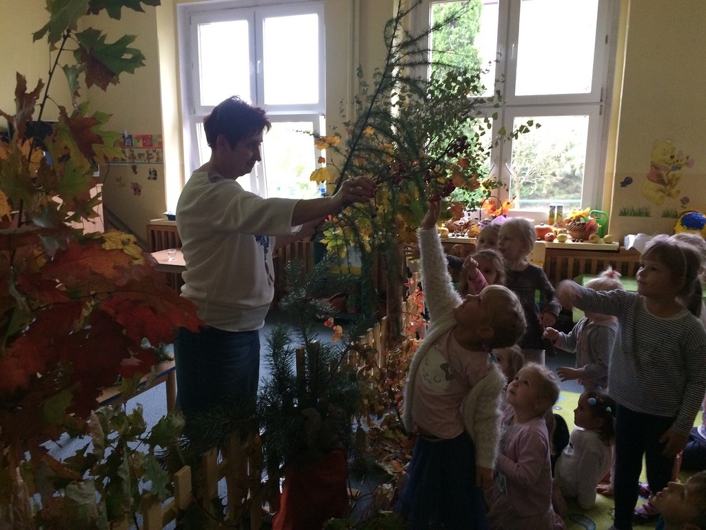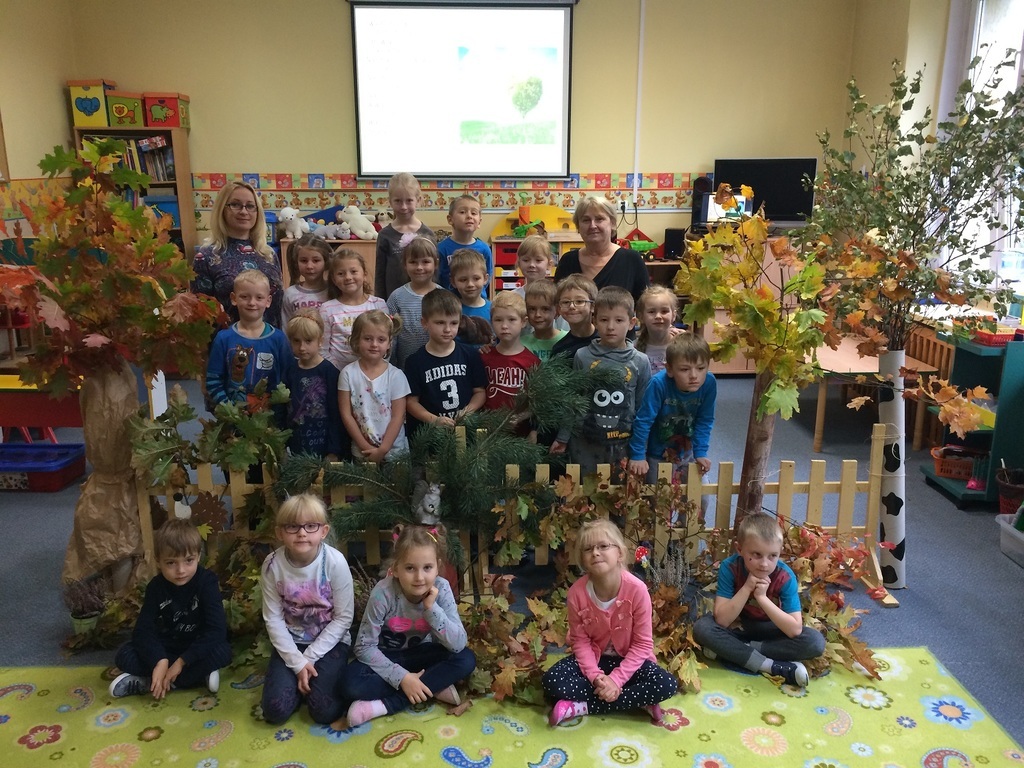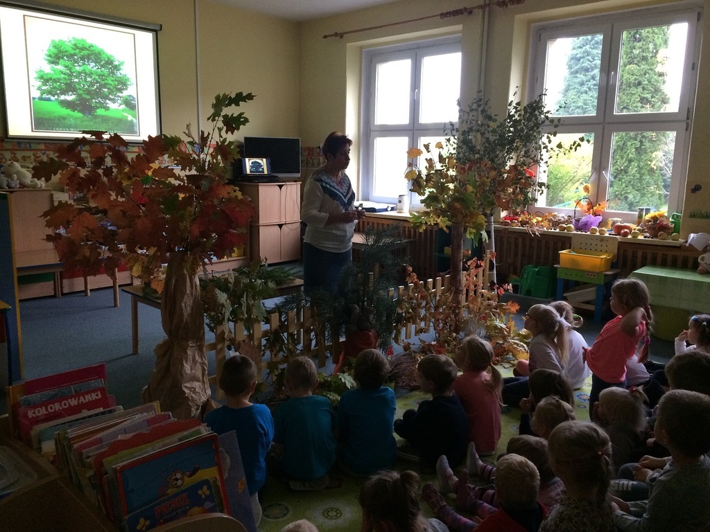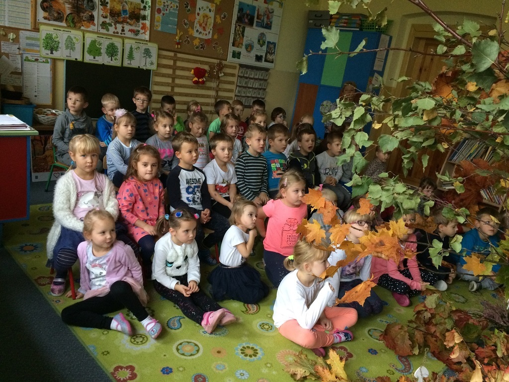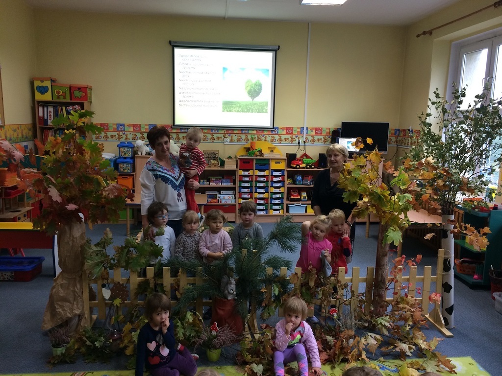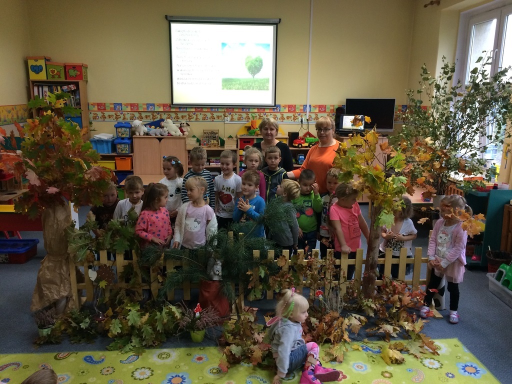 10 października obchodzony jest Światowy Dzień Drzewa. Z tej okazji wszystkie przedszkolaki we wtorek spotkały się na warsztatach przyrodniczych. W pięknej leśnej scenerii przygotowanej w sali przez nauczycieli przedszkola na dzieci czekało mnóstwo przyrodniczych atrakcji. Najpierw wspólnie obejrzały prezentację multimedialną „Dzień Drzewa”. A później buszowały pośród gałęzi i liści. Rozpoznawały i nazywały drzewa liściaste i iglaste. Świetnie bawiły się też przy piosence „Drzewko, drzewo.