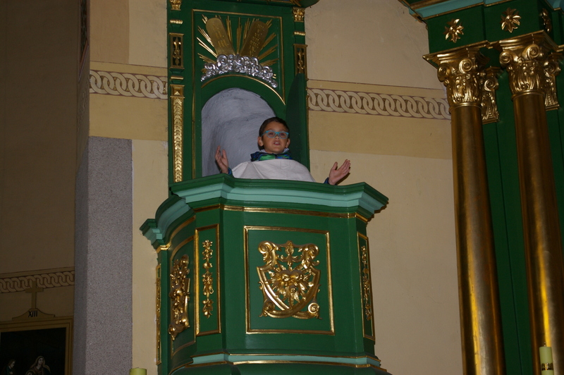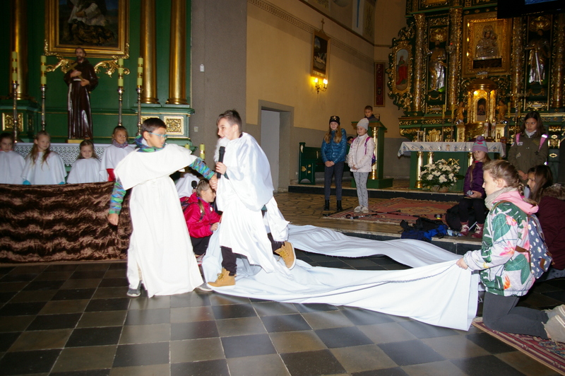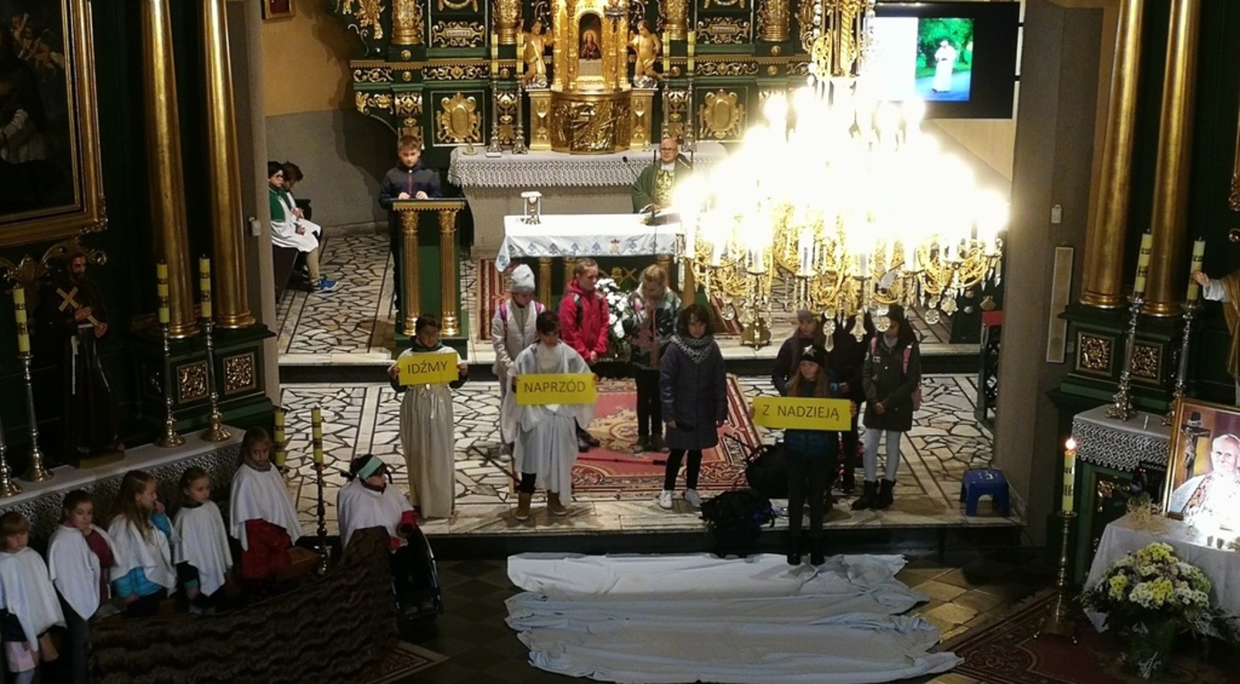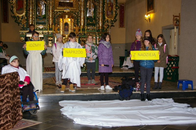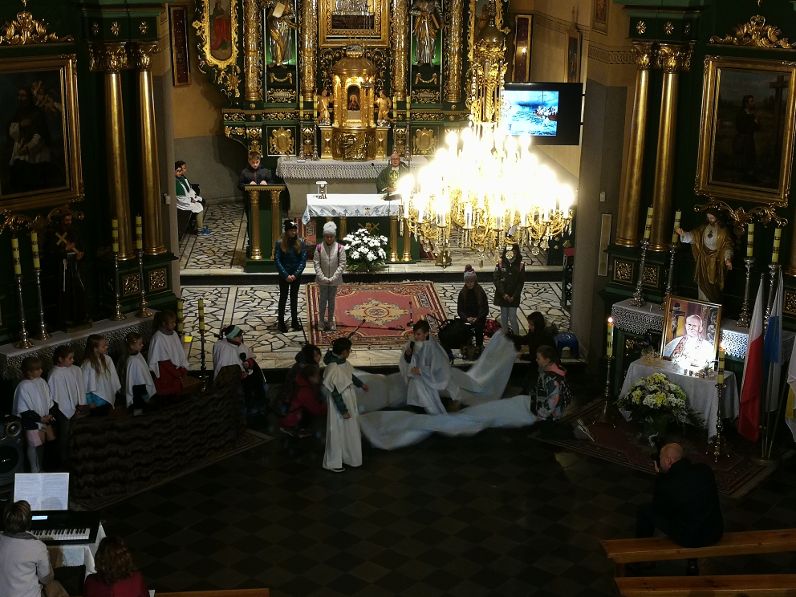 Dzieci w ciekawy sposób, przybliżyły zebranym życie naszego rodaka, które przepełnione było radością, umiłowaniem świata i ludzi, jak również bólem i cierpieniem. Inscenizacja urozmaicona scenkami biblijnymi i przeplatana piosenkami ewangelizacyjnymi ukazała świętego Jana Pawła II jako człowieka, który z wiarą, nadzieją i zaufaniem Jezusowi pokonywał kolejne życiowe trudności.