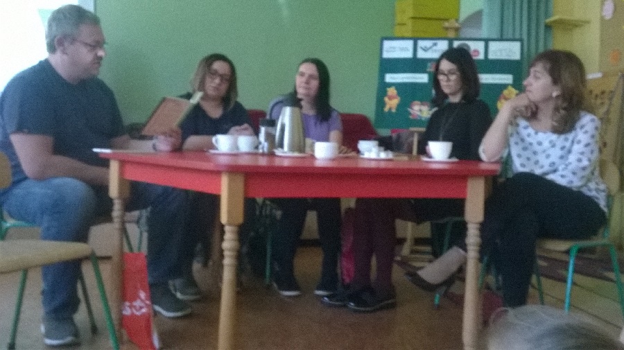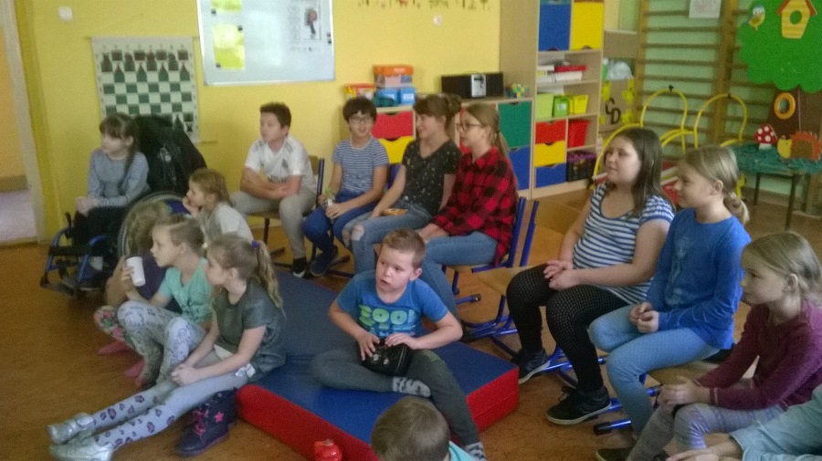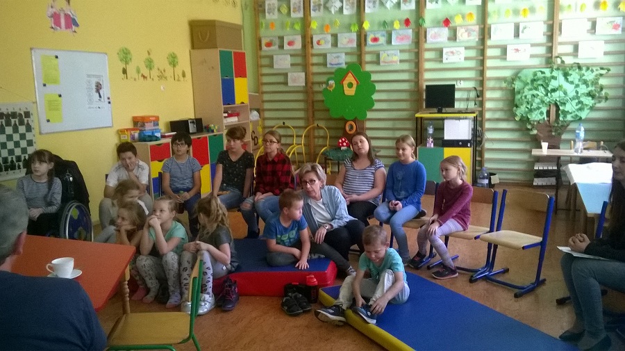 W ramach realizowanego na terenie naszej gminy projektu „Międzypokoleniowe podróże po literaturze” już po raz drugi w naszej szkole odbyło się spotkanie czytelnicze. Tym razem w symboliczną podróż do czasów dzieciństwa wybrali się rodzice i uczniowie klas IV-VII. Nasze zaproszenie do wspólnego czytania fragmentów ulubionych książek przyjęły panie Agnieszka Rys-Błaszkowska, Agnieszka Czajkowska, Edyta Duda oraz Anna Wierżbicka, a także pan Arkadiusz Mikołajek. Nasi rodzice w niezwykle ciekawy i oryginalny sposób opowiadali o takich pozycjach książkowych jak „Ania z Zielonego Wzgórza”, „Mały Książę”, „Babcia na jabłoni” czy „Koń na receptę”. Pojawiła się też rosyjska bajka o chlebku, której głośne czytanie wywołało (zwłaszcza wśród młodszych dzieciaków) duże zaciekawienie. Opowieści o książkach zostały wzbogacone najpiękniejszymi cytatami. Poszczególne prezentacje były przeplatane rozmowami i uwagami rodziców, a także dzieci, co świadczy o dużym zainteresowaniu. Spotkanie przebiegło w ciepłej i przyjemnej atmosferze, którą tworzyli nasi goście oraz Wy, kochani uczniowie.