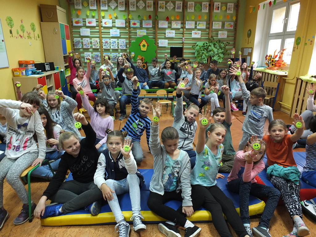 Na zakończenie prelekcji każdy uczeń naszej szkoły otrzymał prezent w postaci zawieszki odblaskowej.