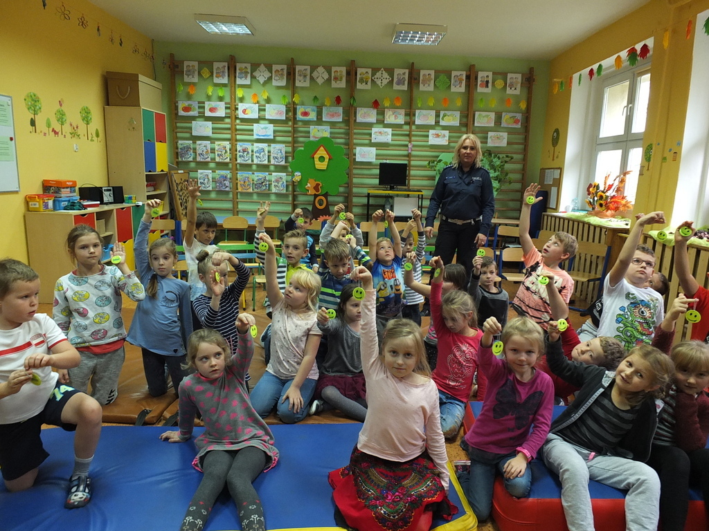 Tematyka tego spotkania dotyczyła bezpiecznego poruszania się po drodze, przechodzenia przez jezdnię, zabaw w pobliżu jezdni oraz podstawowych zasad bezpieczeństwa rowerzysty.