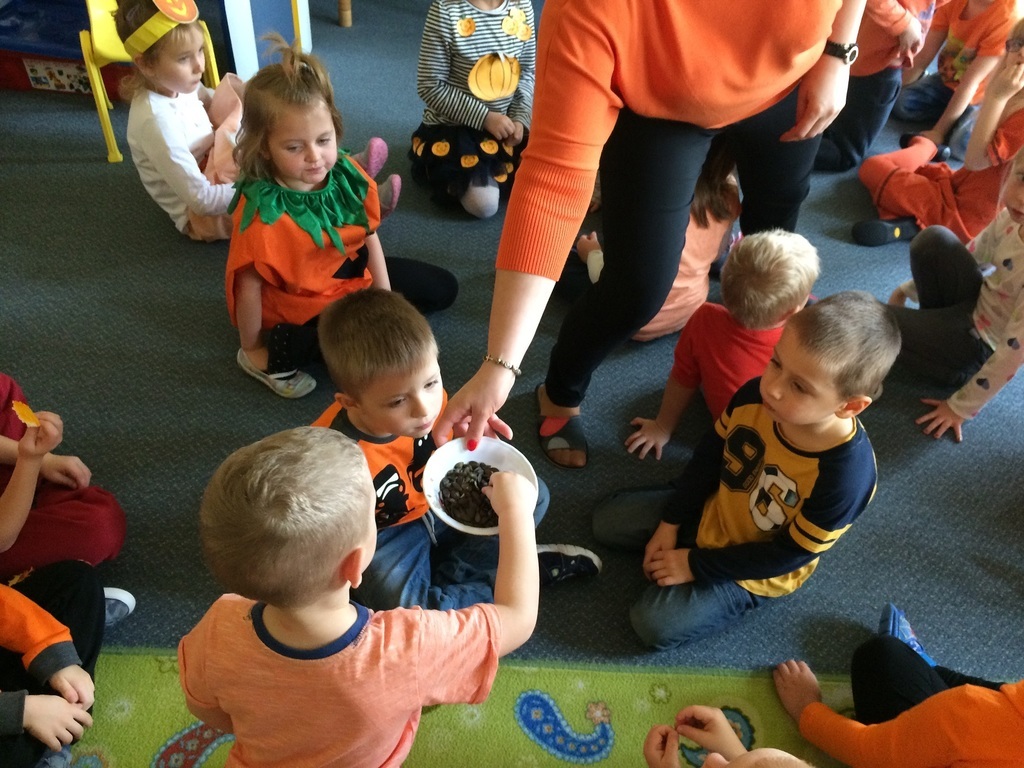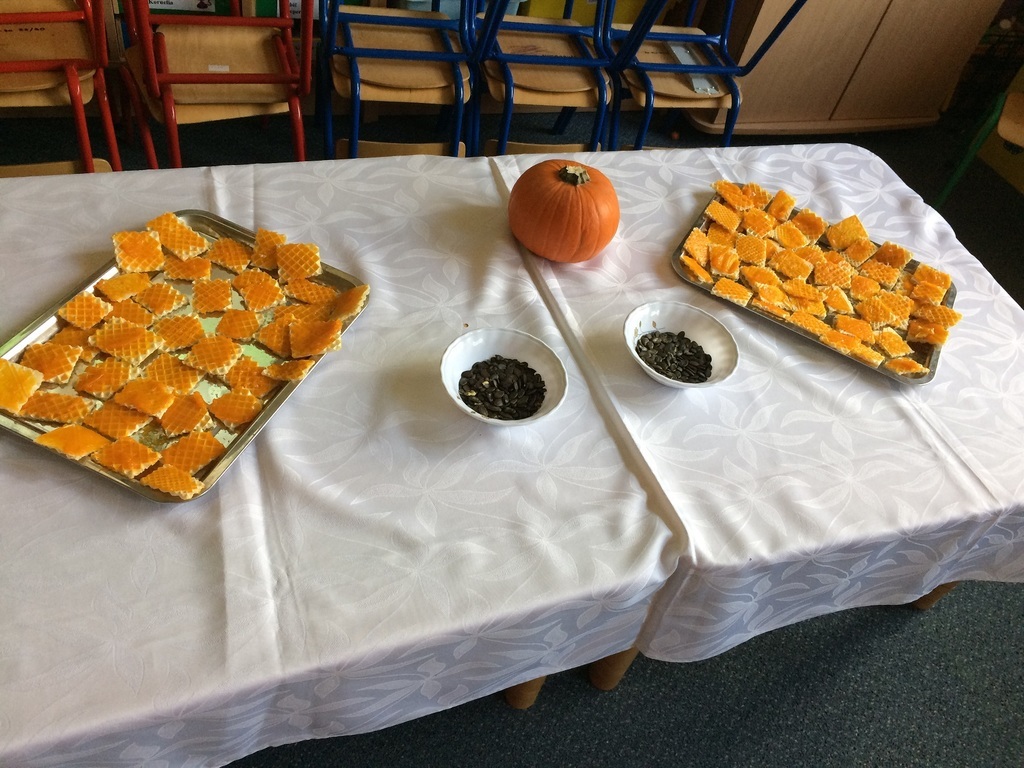 „Dzień Dyni” pozwolił nam poznać wielką różnorodność dyń i wzbogacił naszą wiedzę na ich temat, ale także przypomniał o konieczności spożywania warzyw i owoców, które są bardzo zdrowe. Zachęcił też dzieci do spróbowania potraw z dyni: dżem z dyni o smaku cytrynowym i suszone pestki dyniowe a także zupę z dyni, którą specjalnie na tę okazję przygotowały panie z kuchni.