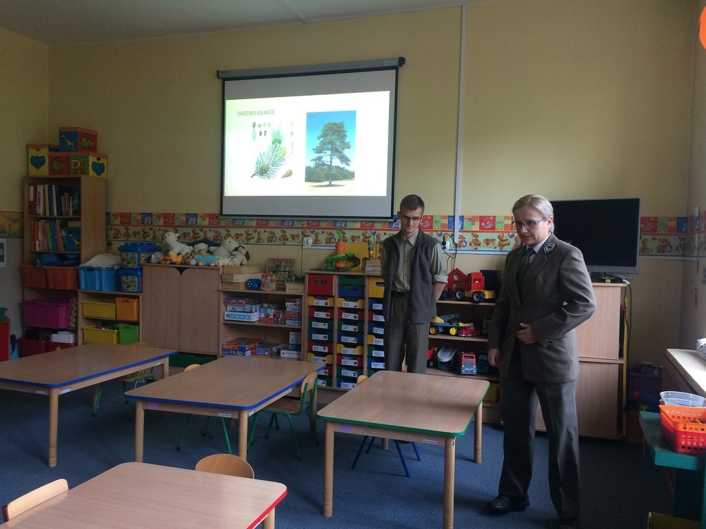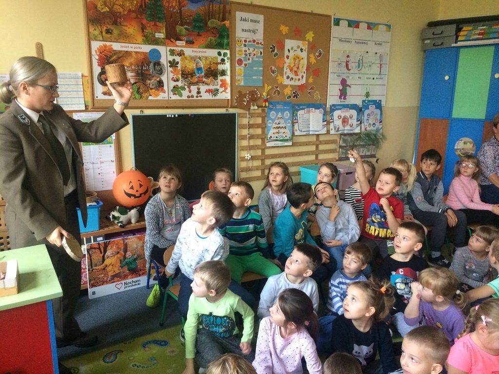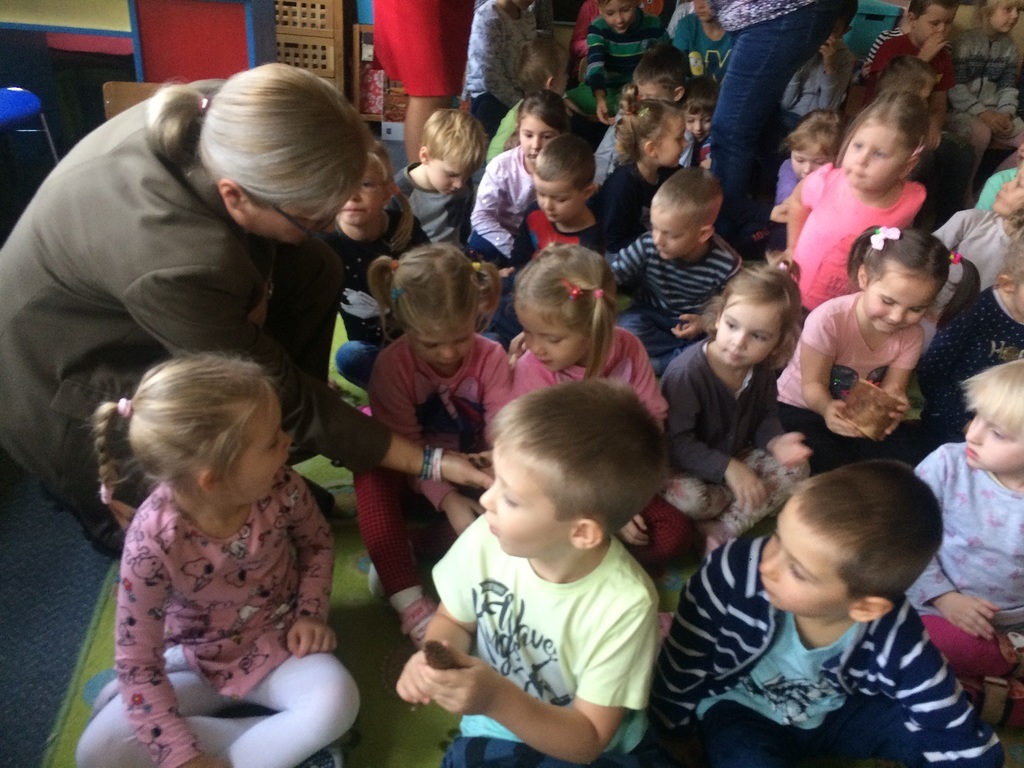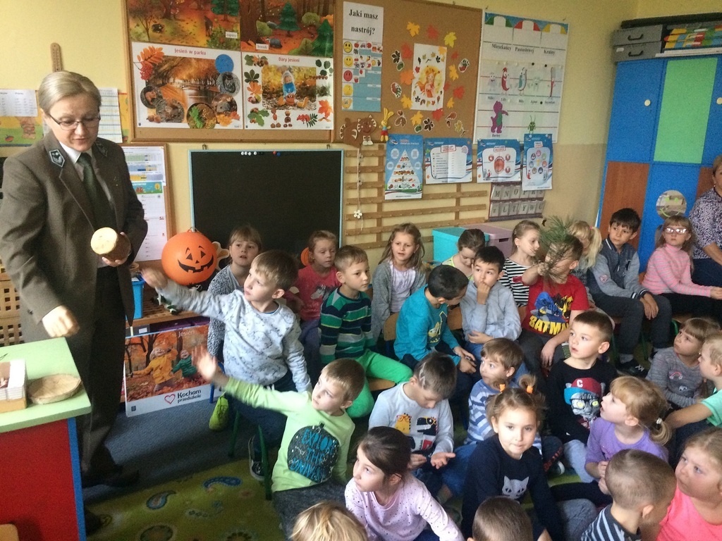 6 listopada do naszego przedszkola przyjechali pracownicy Nadleśnictwa Świerklaniec. Po nawiązaniu współpracy z Nadleśnictwem, odbędzie się cykl spotkań dla przedszkolaków. Tematem pierwszych zajęć były zwierzęta zamieszkujące nasze lasy. Wiele żywych okazów i ciekawa prezentacja multimedialna zaciekawiła wszystkie dzieci. W czasie zajęć gościliśmy również uczniów I kl. Szkoły Podstawowej wraz z wychowawcą, którzy chętnie odwiedzają przedszkolne sale. Z niecierpliwością wszyscy czekamy na kolejne zajęcia.