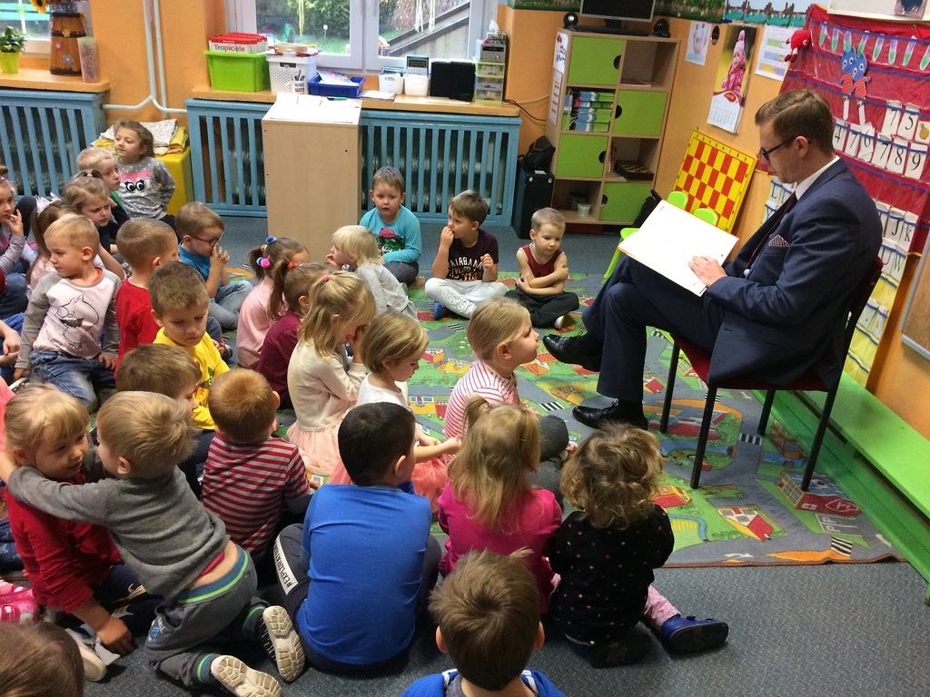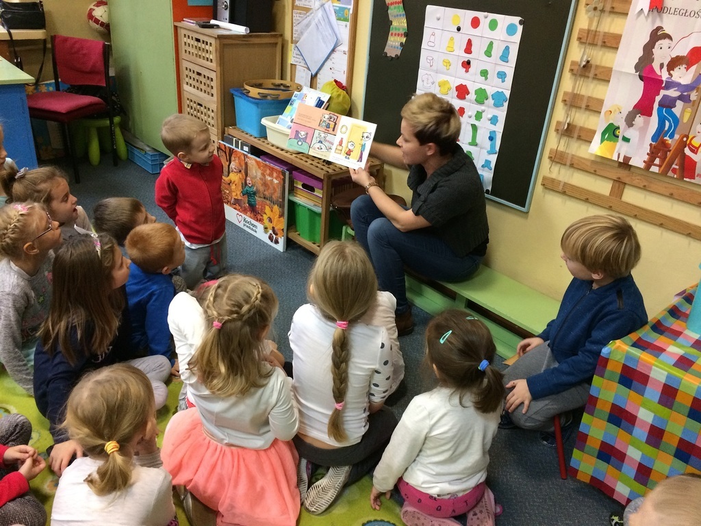 W tym roku również kontynuujemy wspólne spotkania z rodzicami i książką. Akcję rozpoczęliśmy w zeszłym roku, i cieszyła się ona wielkim powodzeniem. Rodzice bardzo chętnie przychodzą do nas a przedszkolaki uczą się trudnej sztuki jaką jest słuchanie. Dzieci z dużym zaciekawieniem słuchają tekstów przygotowanych przez naszych gości. W tym roku szkolnym odwiedził nas już tatuś Beatki z grupy „Maluchy” i mamusia Kornelii ze Średniaków. Serdecznie zapraszamy do nas chętne osoby, które do południa dysponują wolnym czasem.