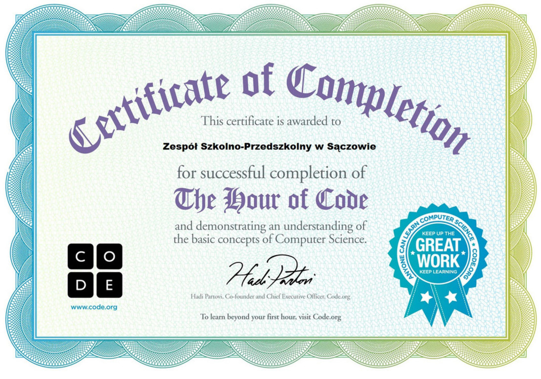 Miło nam poinformować, że uczniowie naszej szkoły wzięli udział w Godzinie Kodowania organizowanej w ramach Tygodnia Edukacji Informatycznej, przypadającej w tym roku w dniach 4-10 grudnia 2017. Godzina Kodowania, organizowana w ramachTygodnia Edukacji Informatycznej (Computer Science Education Week, USA), jest największą inicjatywę edukacyjną w historii, adresowaną do uczniów z całego świata. Cieszy się również dużą popularnością w Polsce. Pierwotnie, celem tej inicjatywy było przybliżenie uczniom informatyki w formie łamigłówek z postaciami z ich gier i zabaw, których rozwiązanie polega na ułożeniu programów z gotowych bloczków. Oferta łamigłówek i kursów jest obecnie bardzo bogata, dzięki propozycjom wielu partnerów, takich jak Microsoft, czy Disney. W tym roku również my przyłączyliśmy się do akcji. Nauczycielka informatyki pani Małgorzata Tomczyk-Nowak przeprowadziła zajęcia z informatyki w ramach Godziny Kodowania. Uczniowie z klas IV-VII oraz uczestnicy kółka informatycznego świetnie bawili się jednocześnie poznając tajniki kodowania. Musimy się pochwalić, że nie tylko lekcje, ale również swój czas wolny uczniowie poświęcają na naukę programowania, czego dowodem są liczne uzyskane certyfikaty otrzymane za udział w godzinie kodowania.