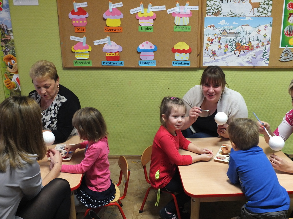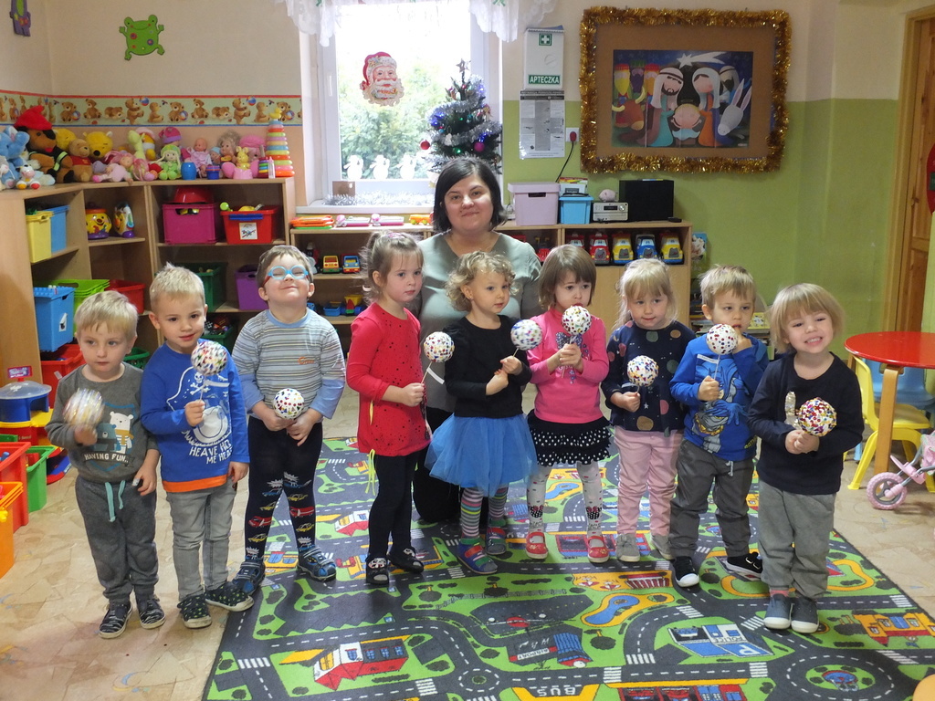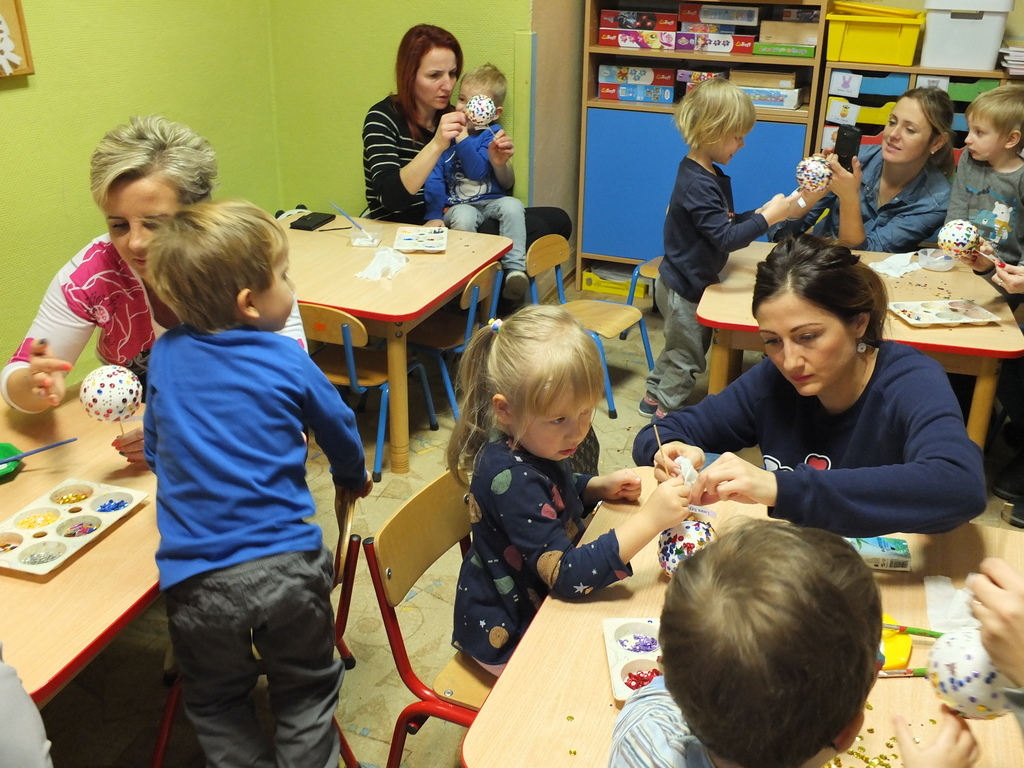 W dniu 13.12.2017 r. sala przedszkolna w grupie maluchów zamieniła się w Fabrykę Ozdób Choinkowych. Maluchy przygotowały krótki występ muzyczny dla swych rodziców, który wprowadził wszystkich w miły i świąteczny nastrój. Dzieci wraz z rodzicami mogły dać upust swojej fantazji i własnoręcznie wykonać bombkę swoich marzeń.