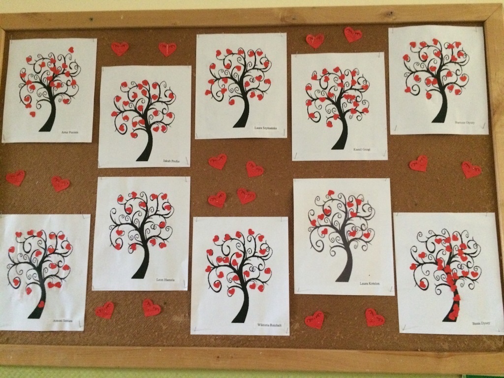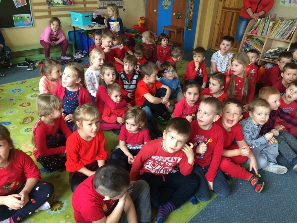 „Czternastego dnia lutego, mamy święto Walentego. Szykujemy upominki, które zwiemy – walentynki”. Nauką tego wierszyka wszystkie przedszkolaki, rozpoczęły świętowanie dnia zakochanych. Wszyscy ubraliśmy się na czerwono i razem oglądaliśmy prezentację multimedialną o tematyce dnia zakochanych. Na koniec były słodziutkie lizaki w kształcie serduszek. Podsumowaniem dnia były piękne prace plastyczne wykonane w grupach.