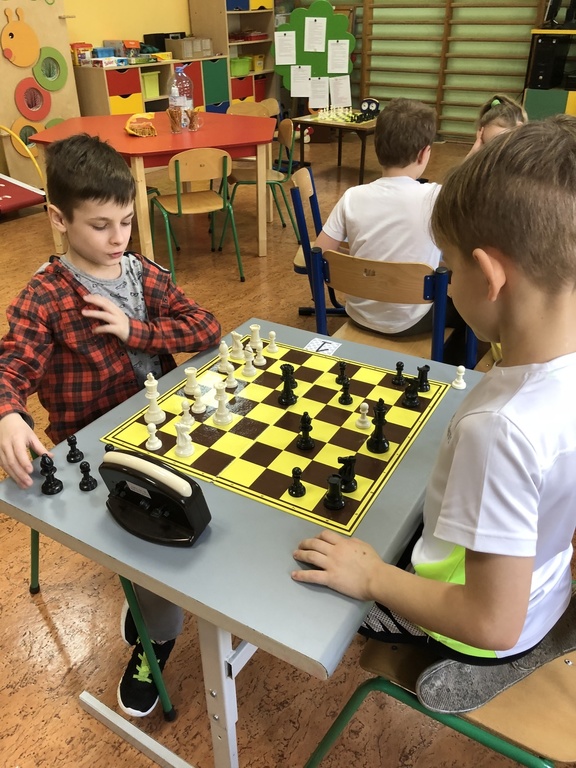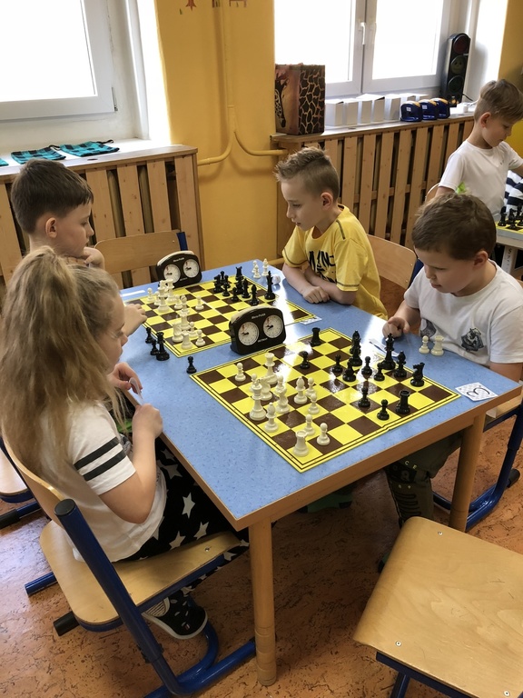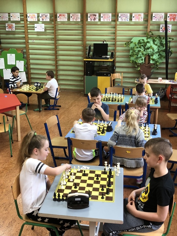 Spośród uczniów klas I –III do udziału w turnieju zgłosiło się 11 dzieci. Ze względu na ograniczoną ilość miejsc w piątek 9 marca odbyły się eliminacje. Dzieci na lekcji 6 i 7 rozegrały 4 rundy. Odbyła się również 5 runda tzw. dogrywka dla dwóch zawodników: Pawła Kuwaka i Filipa Barańskiego. Walka chłopców była do końca bardzo wyrównana. Szczęście tym razem uśmiechnęło się do Pawła.
