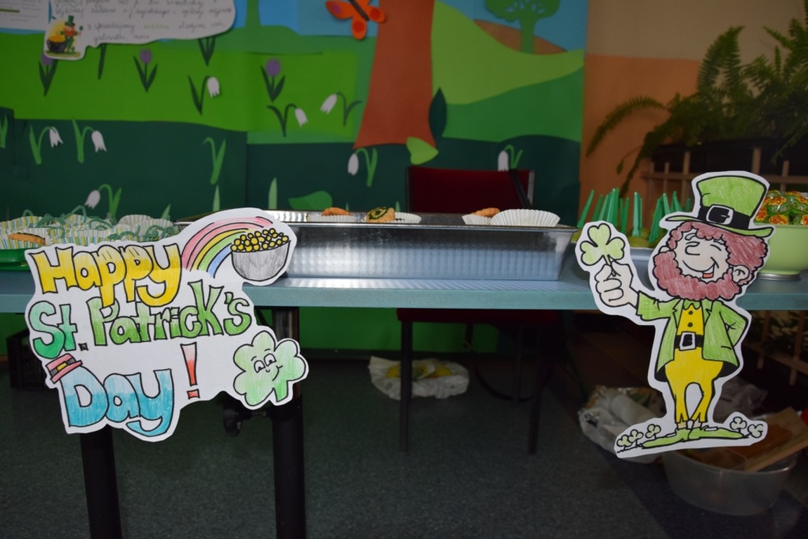 My również postanowiliśmy nawiązać do tego wydarzenia i zorganizowaliśmy Dzień Św. Patryka w naszej szkole. Najważniejszą tradycją obchodów tego święta jest noszenie ubrań w kolorze zielonym, nawiązującym do krajobrazu wyspy i koniczyny, która jest symbolem Irlandii. Wielu uczniów i nauczycieli włączyło się we wspólną zabawę i przyszło w tym dniu „na zielono”.