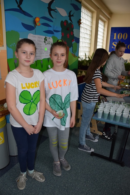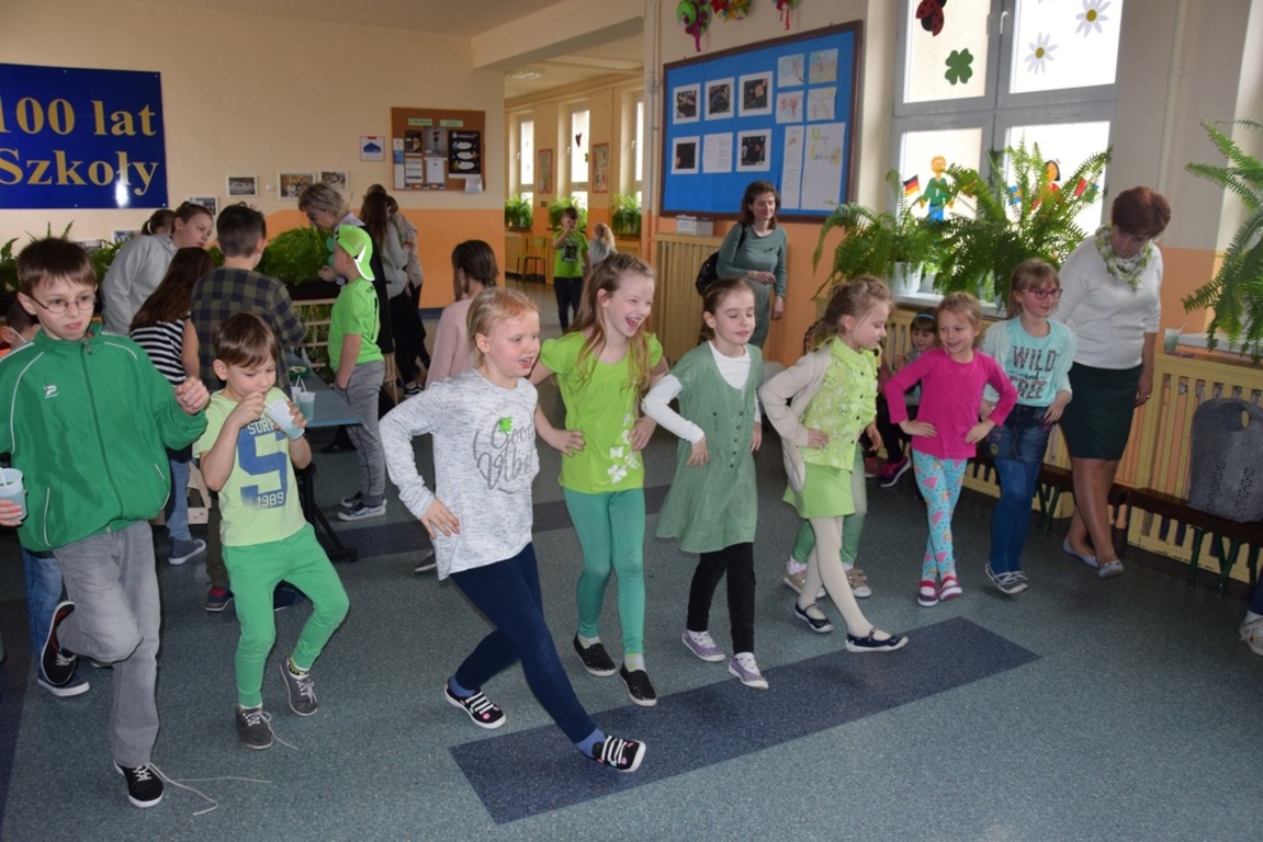 Uczniowie wszystkich klas brali tego dnia udział w poszukiwaniu zielonych koniczynek ukrytych przezleprechauna (leprikona) - skrzata z irlandzkiej legendy. Po znalezieniu jednej koniczynki uczniowie wykonywali zadanie związane z językiem angielskim i losowali nagrodę. Radości nie było końca.