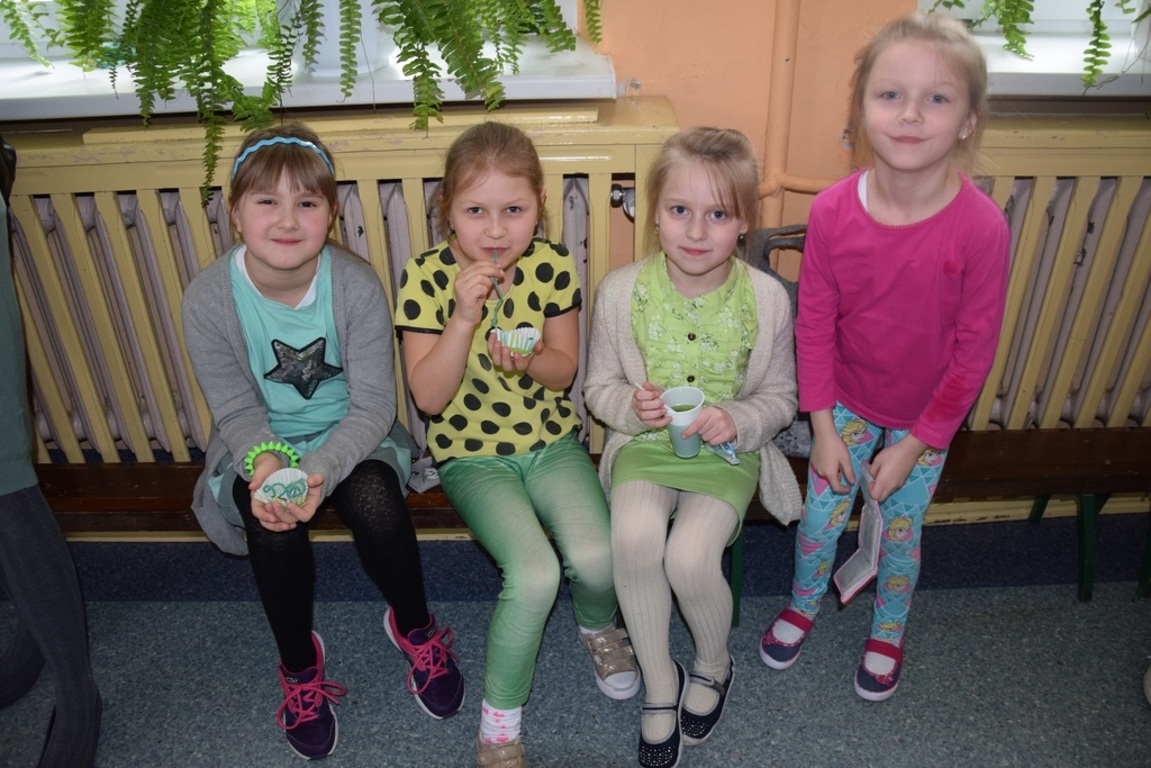 Pragnę gorąco podziękować uczniom i rodzicom mojej klasy V, którzy włączyli się w przygotowanie „zielonych” słodkości oraz byli zaangażowani w przygotowania i przebieg imprezy.