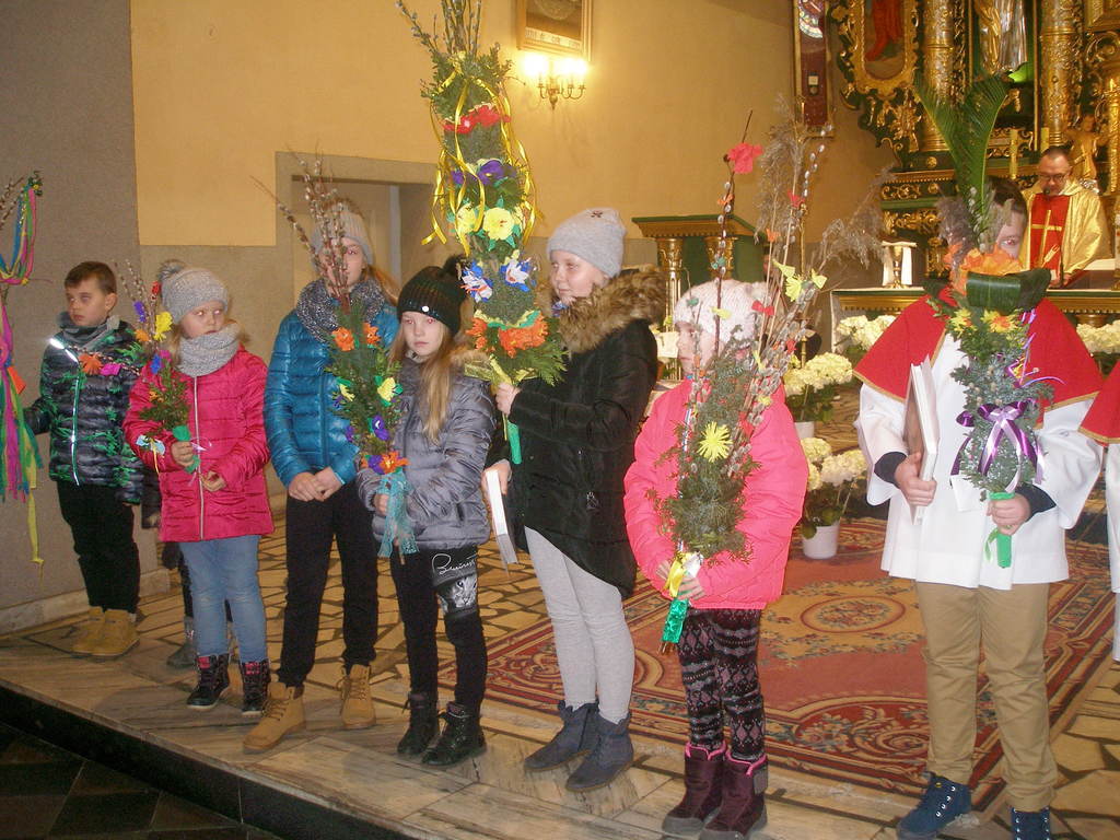 Do Konkursu zgłoszono 11 palm wykonanych przez dzieci z sączowskiej parafii.