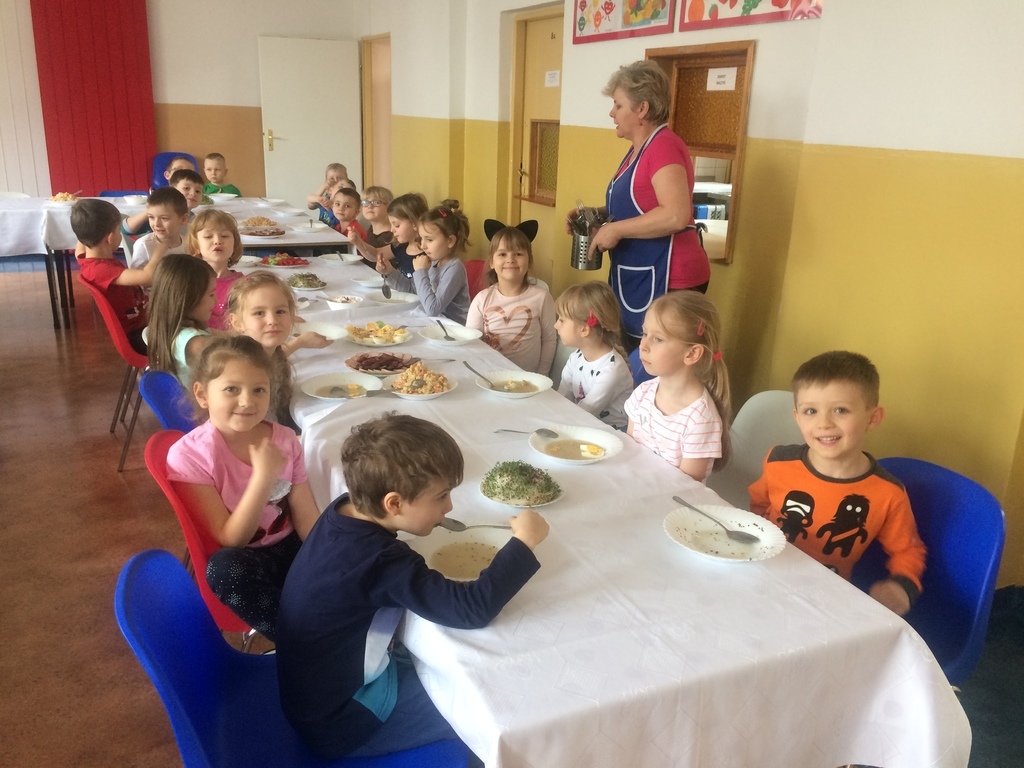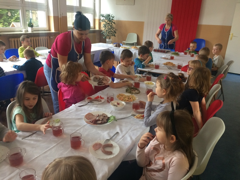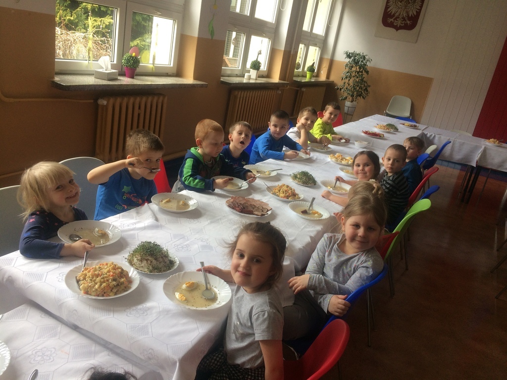 W środę 28 marca dzieci z naszego przedszkola uczestniczyły w uroczystym obiedzie wielkanocnym. To specjalne wydarzenie służy zarówno praktycznemu zapoznaniu dzieci z tradycjami i obyczajami polskimi oraz rozwijaniu poczucia przynależności do społeczności przedszkolnej. Po obiedzie przyszedł czas na odpoczynek i niespodziankę dla dzieci w formie słodkiego poczęstunku oraz bajki.